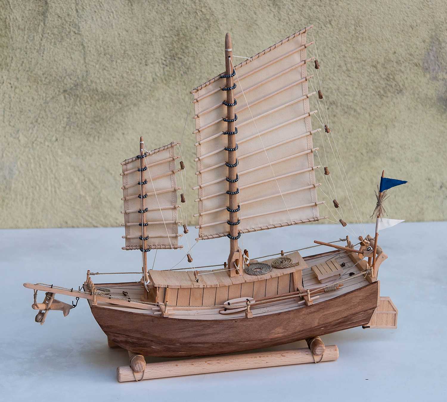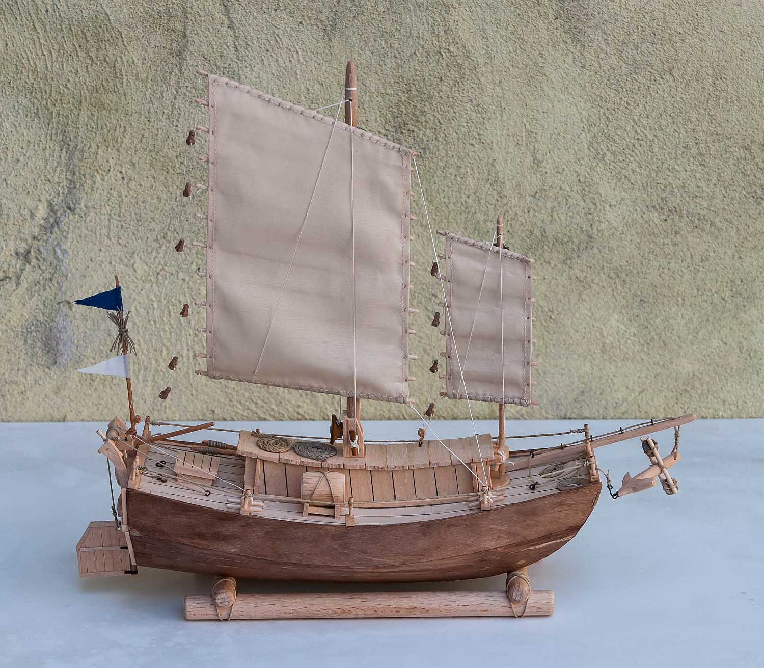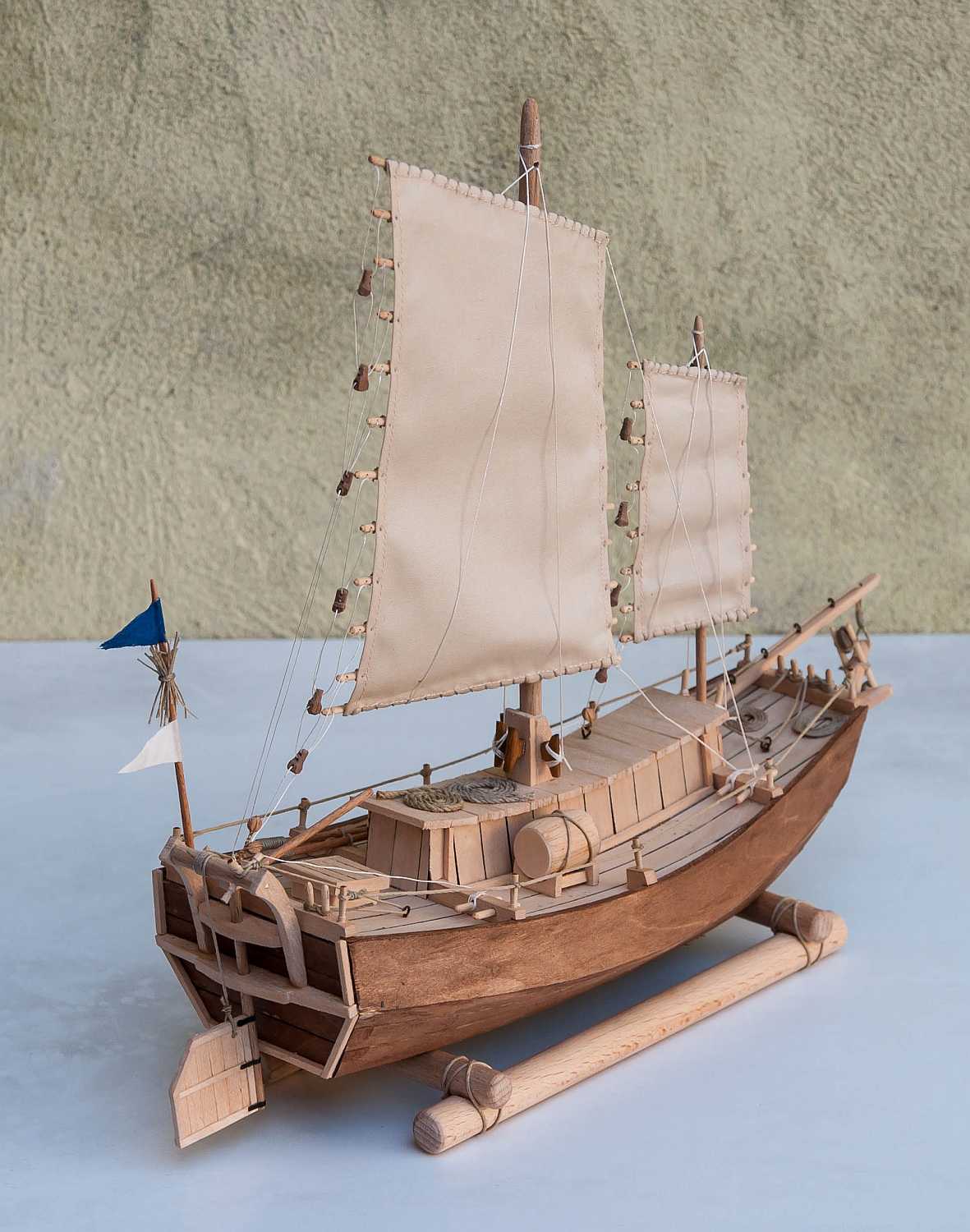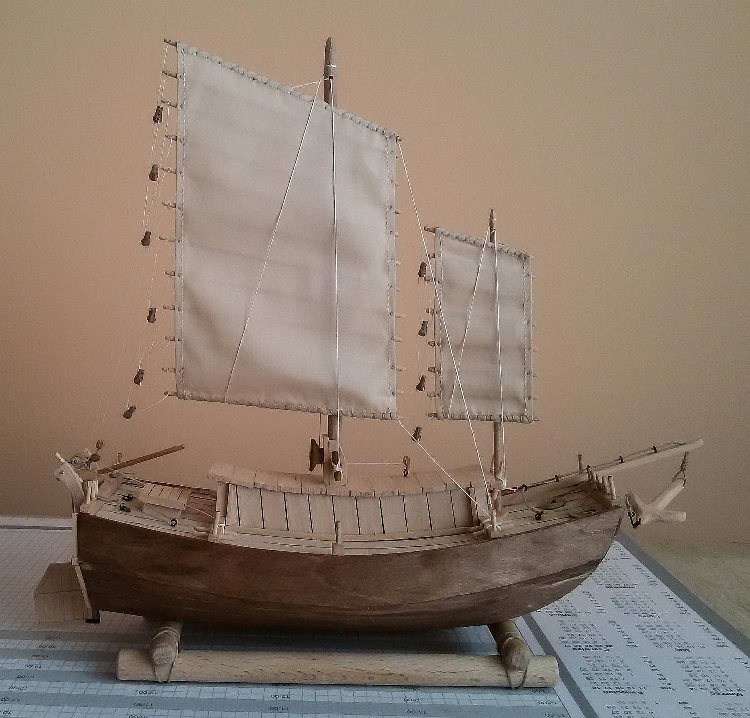 Jeśli mogę wtrącić coś jako początkujący budowniczy dżonki - kawał dobrej roboty. Nie podoba mi się tylko mocowanie żagli do masztów. Patrząc jak biedne były to łodzie, Twoje rozwiązanie wydaje mi się zbyt "bogate". Chyba, że powinno tak być?