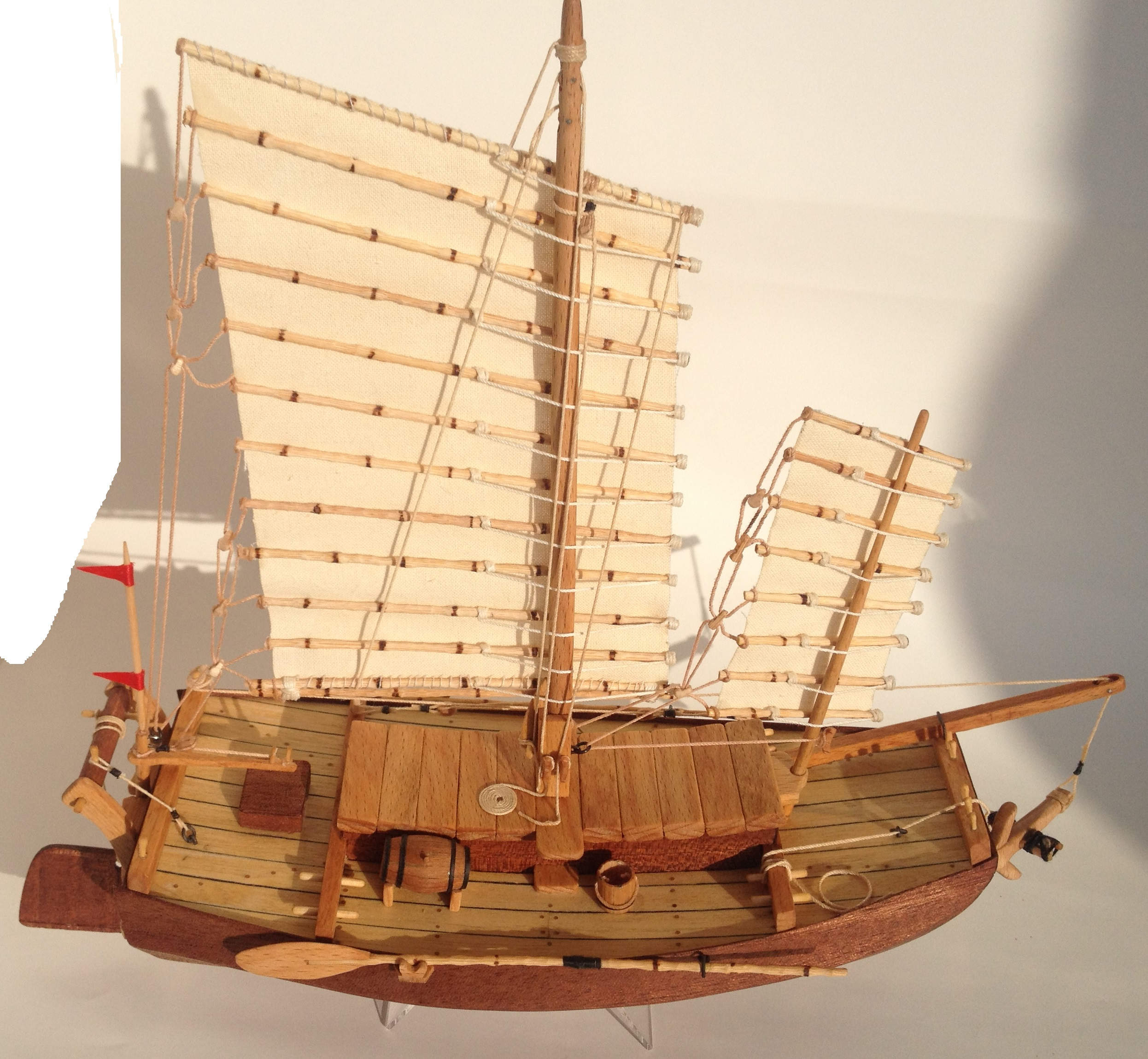 Witam, jako że już się przedstawiłem chciałbym zaprezentować swoją pracę. Wcześniej popełniłem kilka modeli samolotów ale nigdy nie miałem styczności z modelarstwem szkutniczym dlatego nie chcę się porywać z motyką na słońce i nie chcę zaczynać od Mayflower'a bądź innych galeonów. ;) Nie jestem osobą która lubi się obrażać więc krytyka mile widziana, bo tylko w ten sposób można się czegoś nauczyć. Dżonkę wybrałem ponieważ jak dla mnie jest sympatyczna ale można na niej nauczyć się najważniejszych podstaw.