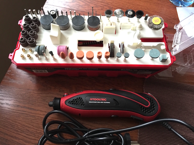 Problem z tego typu urządzeniami za 69zł jest taki że z reguły posiadają centryczność na poziomie 2mm :) zakładasz wiertło na 1mm a otwór wychodzi na 3mm :) ale jak na początek to i take coś jest dobre, do zgrubnego doszlifowywania na pewno się nada. Powodzenia