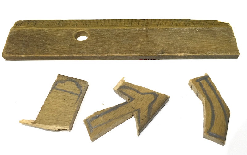 Powoli dłubię elementy w drewnie. Jako materiał służy mi stara drewniana linijka, chyba bukowa o ile się nie mylę.