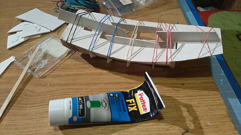 ... posklejałem kadłub na tyle na ile pozwolił klej, teraz musi to wyschnąć.