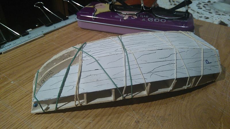 Zeskosowałem dno, i wkleiłem wzmocnienia dziobowe.