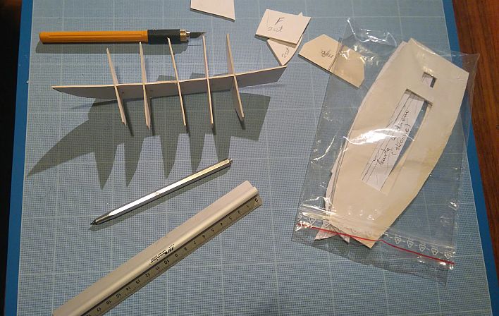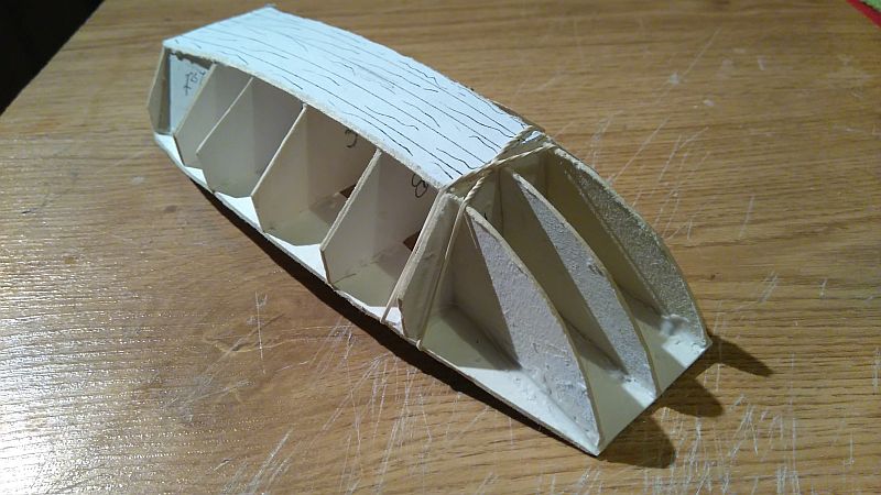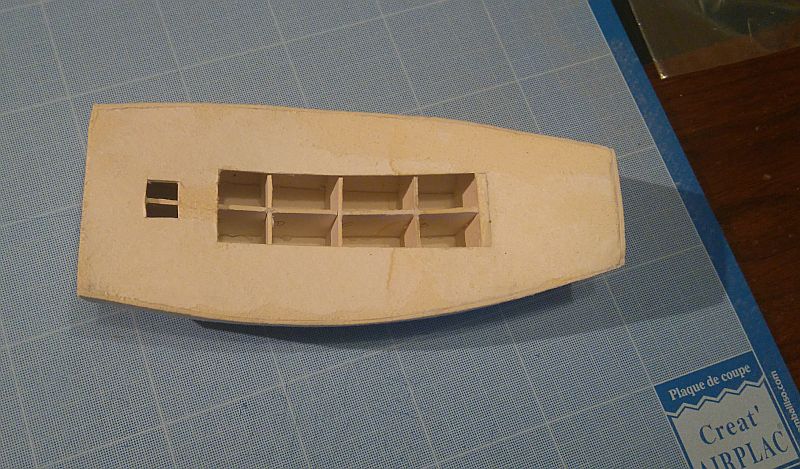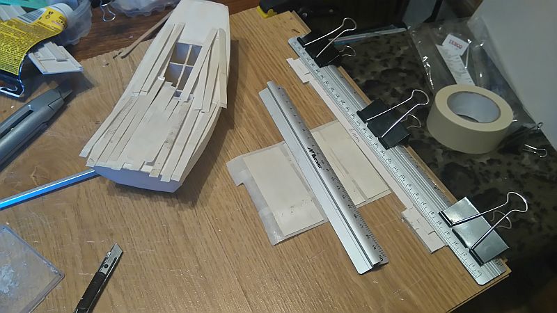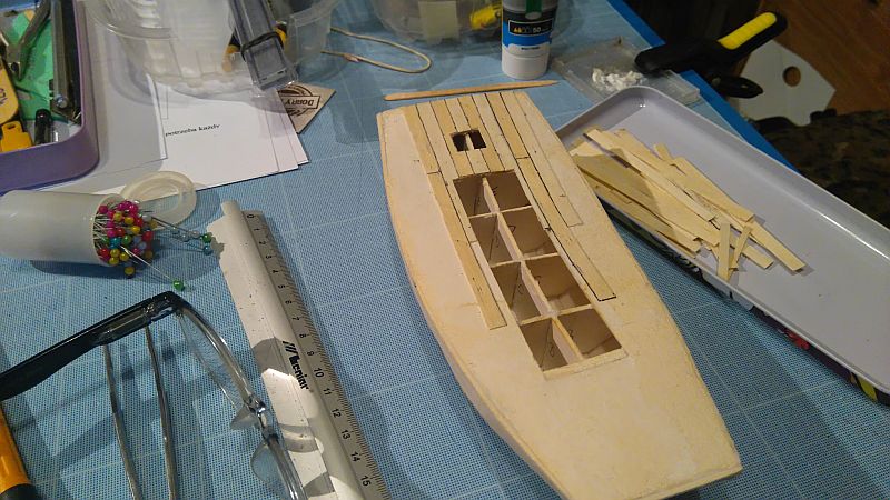 Zeskosowałem dno, i wkleiłem wzmocnienia dziobowe.