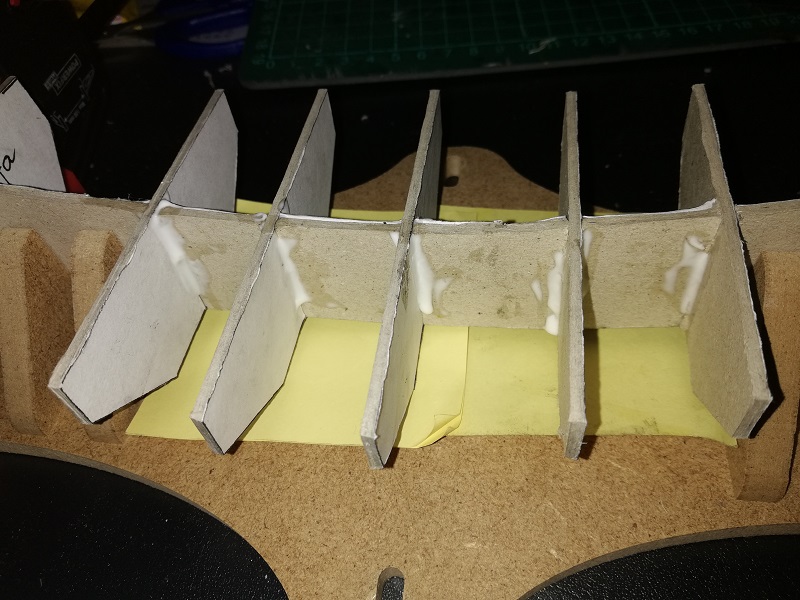 Jak wszyscy najpierw szkielecik z tektury 2 mm, nie jest idealnie, ale lepiej niż w poprzedniej, wycinane nożykiem Ak-4 z ostrzem KB. (OLfa)