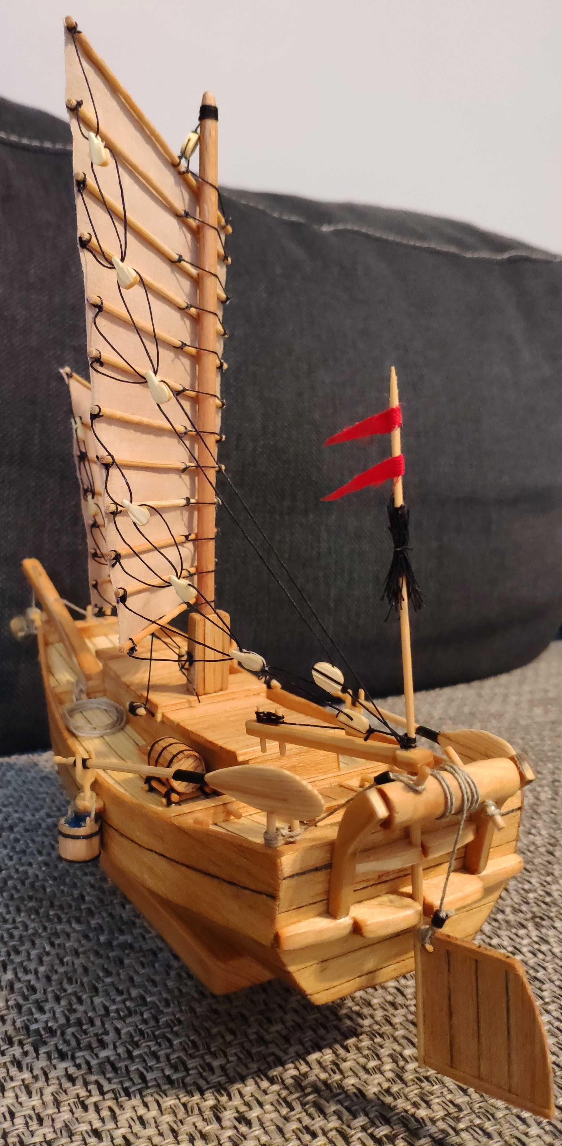 Ostatnia aktualizacja i już definitywny koniec prac (przy tym modelu bo szykuje się do następnego). Zrobiłem nowa beczkę z 35 elementów :lol: dodałem okucie do wiaderka (żona chce by zostało więc ... zostaje) i czarne owijki na wiosłach.