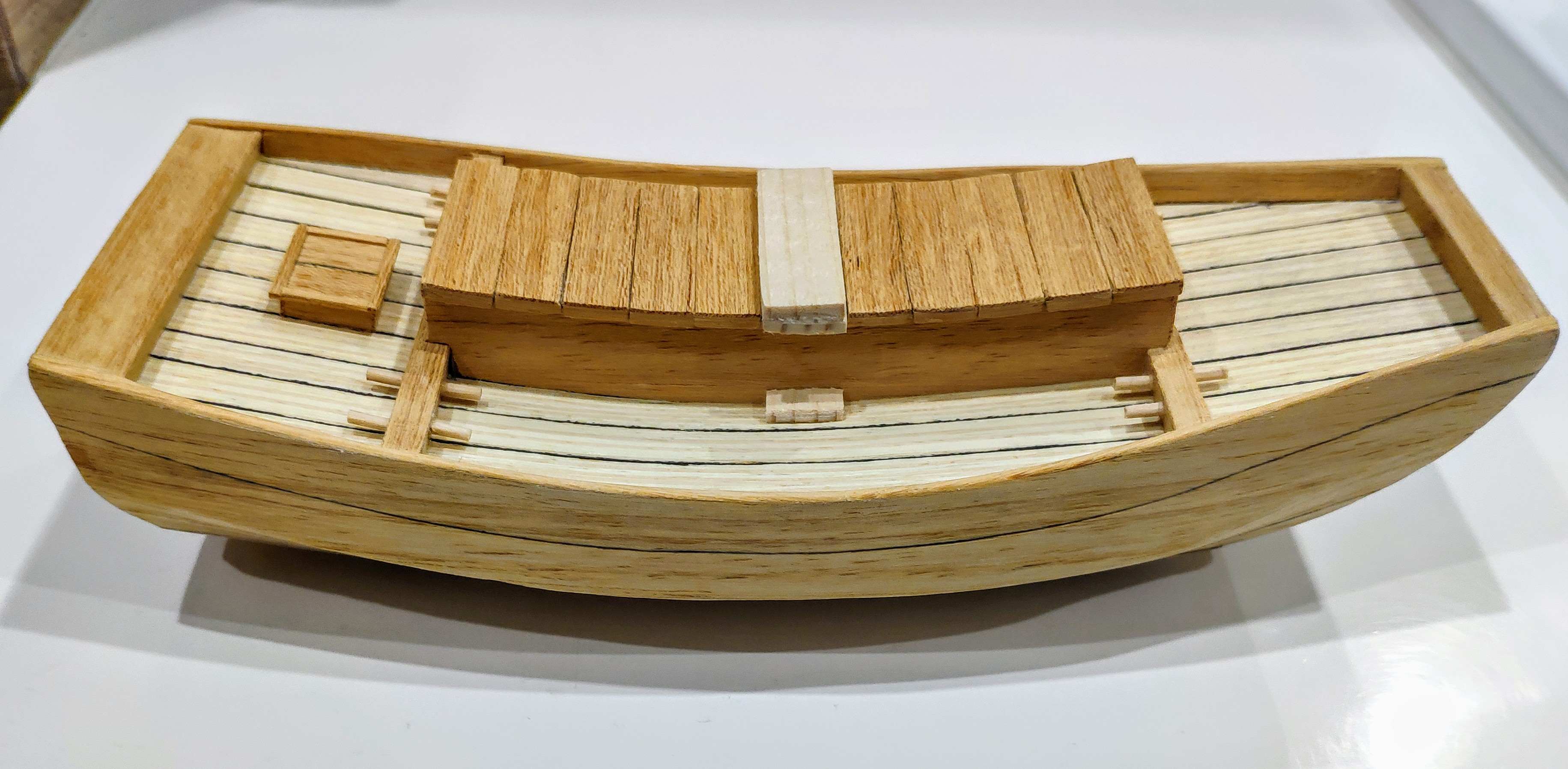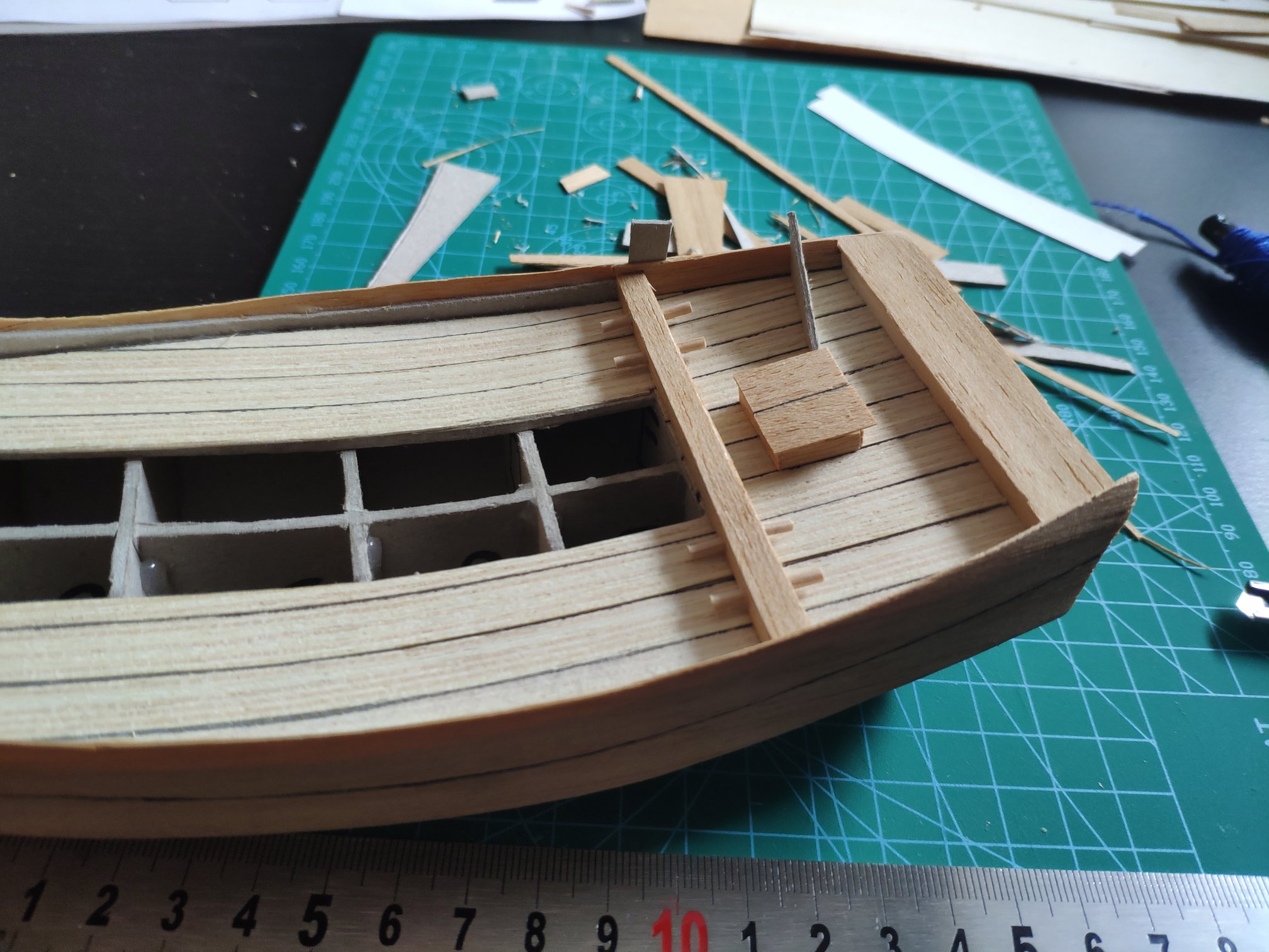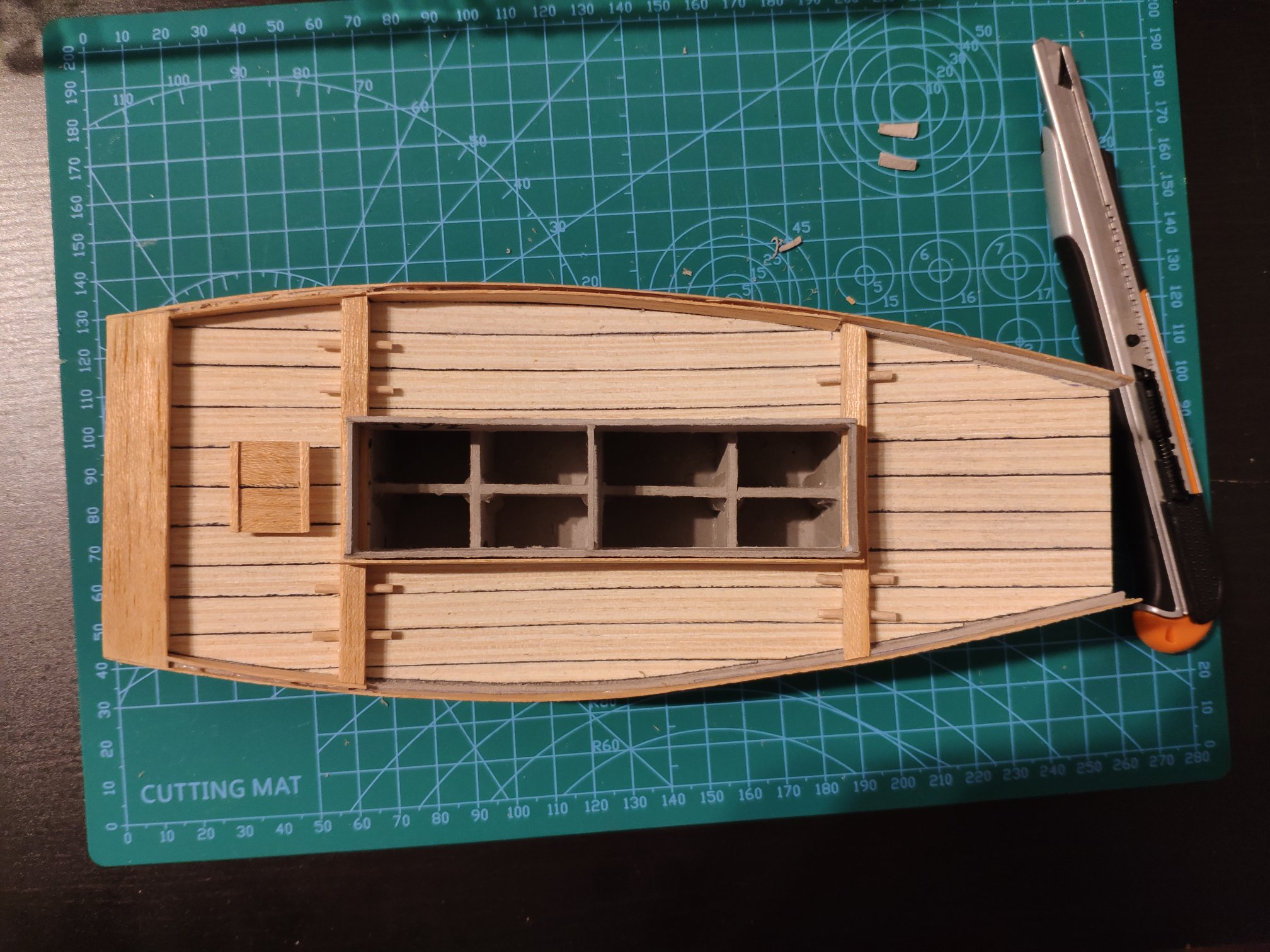 Poszycie gotowe zaczynam pokład i tutaj sobie wymyśliłem podwójne burty co jest bardzo precyzyjną robotą i czasochłonną a najtrudniej będzie z 3 mm paskiem forniru dookoła pokładu na płasko by połączyć boki burt. Zobaczymy jak to wyjdzie