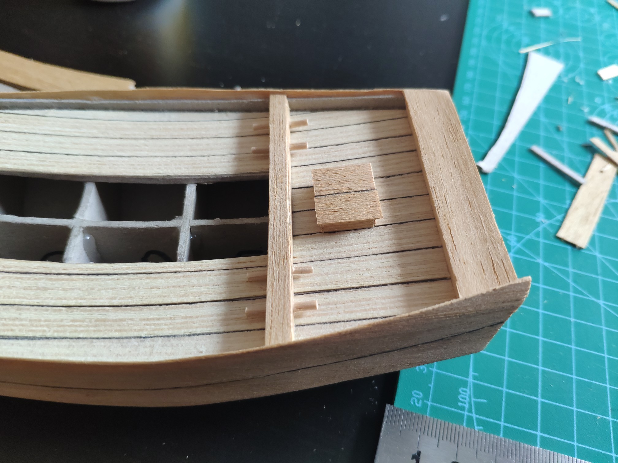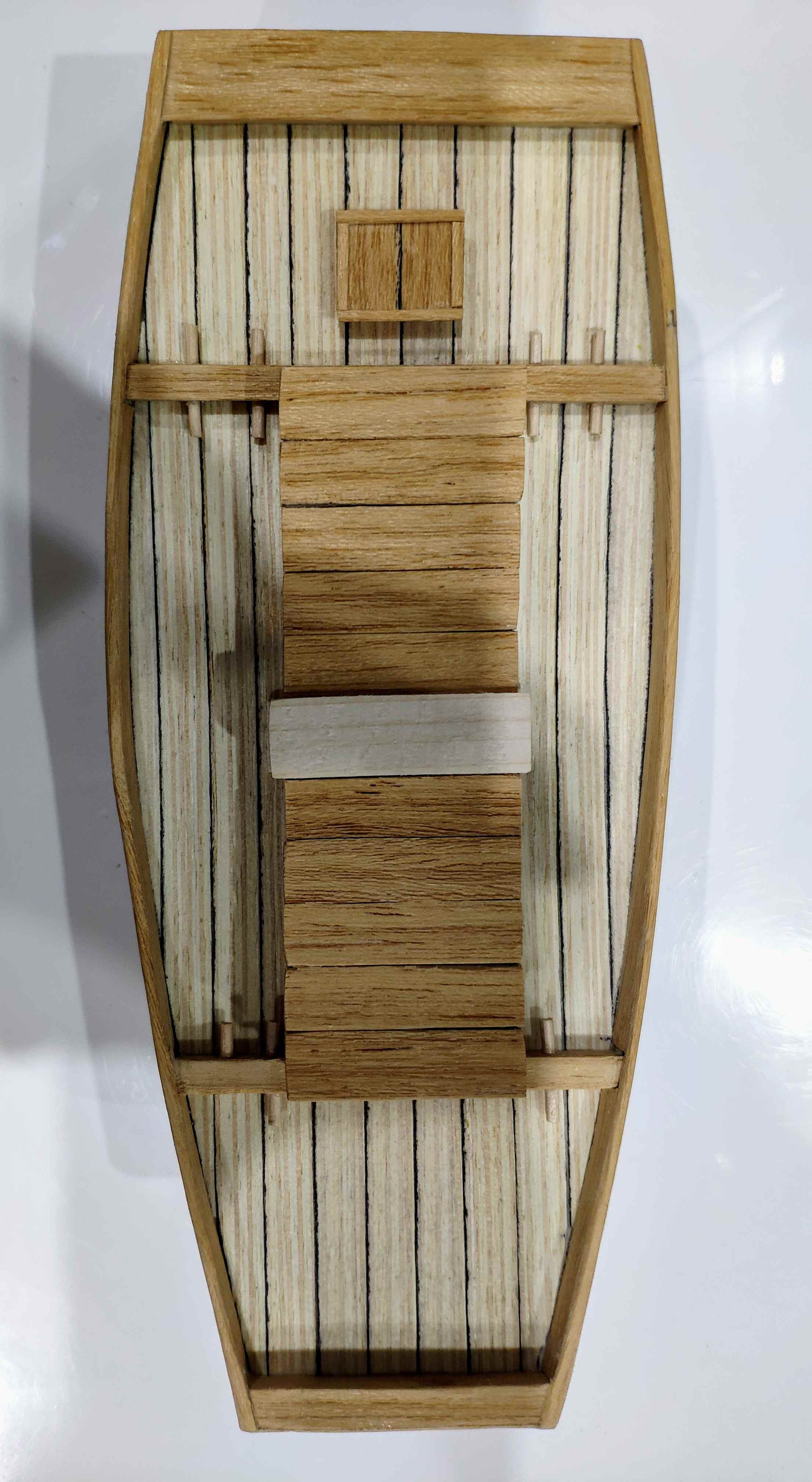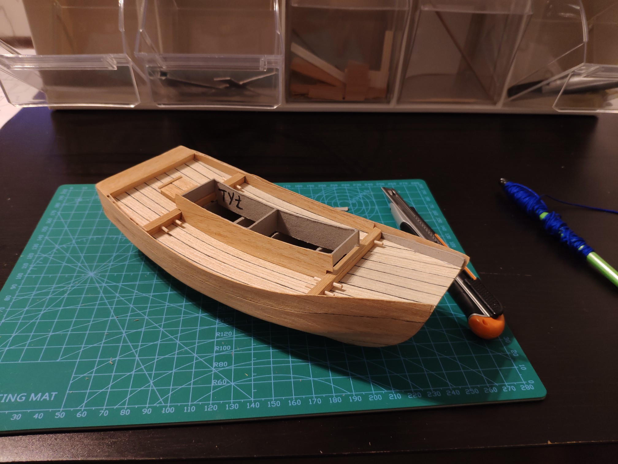 Poszycie gotowe zaczynam pokład i tutaj sobie wymyśliłem podwójne burty co jest bardzo precyzyjną robotą i czasochłonną a najtrudniej będzie z 3 mm paskiem forniru dookoła pokładu na płasko by połączyć boki burt. Zobaczymy jak to wyjdzie