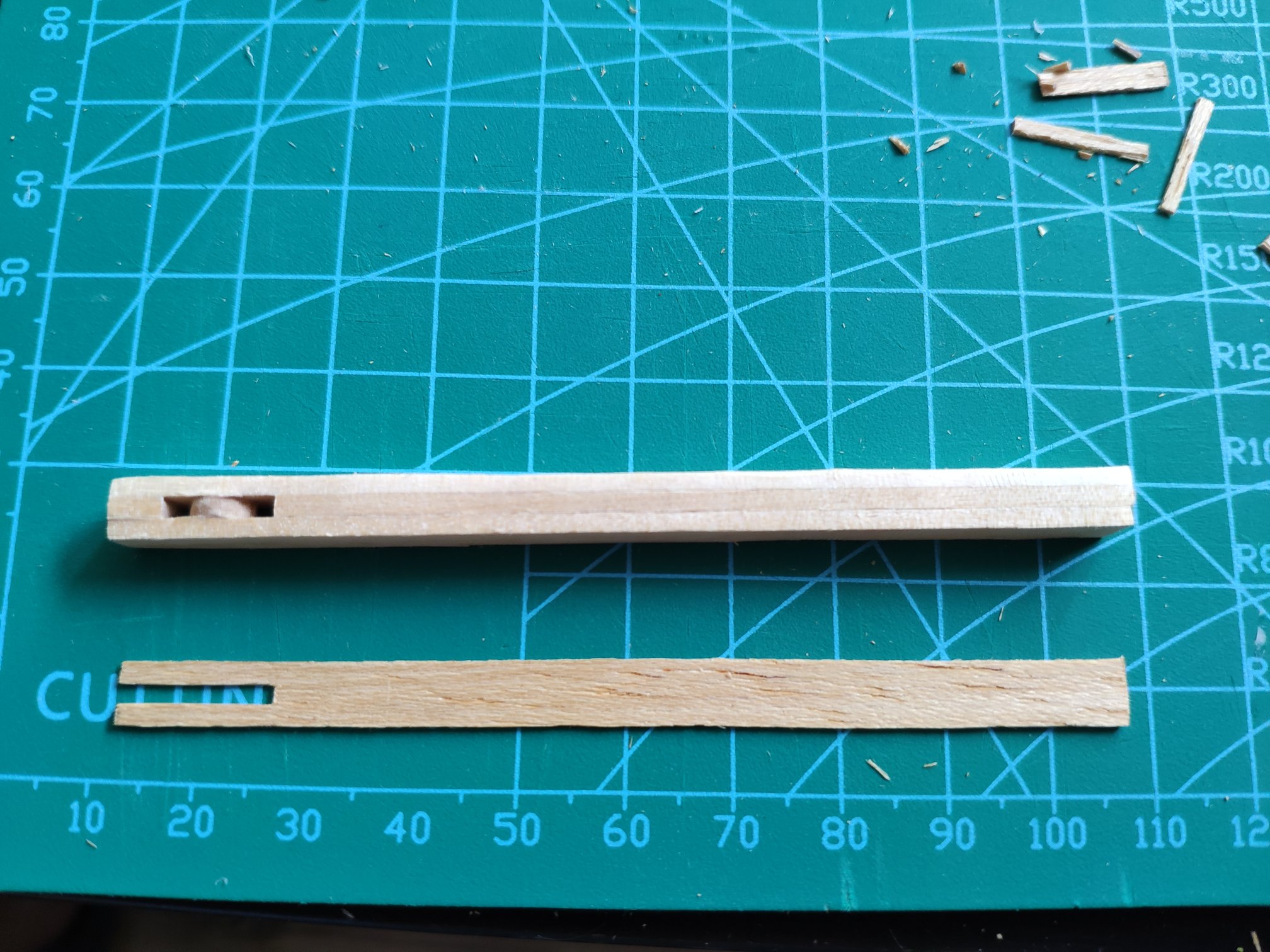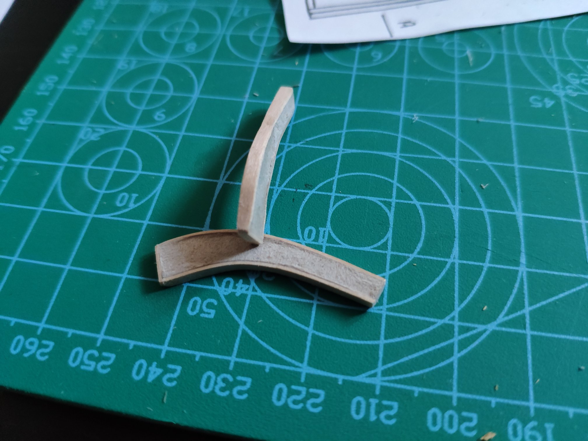 Prace stoją w miejscu praktycznie ... Natrafiłem na mały problem nie znając się na fornirze wybrałem na kadłub Koto a na pokład Sosnę i było wszystko oki chociaż już po drodze zobaczyłem, że Koto lubi się łamać wzdłuż słoja gdy tnę go w poprzek przy elementach poniżej 1 cm ale myślałem, że taka specyfika forniru aż nie spróbowałem Brzozy Fińskiej ... bajka można ciąć nawet po łuku i nie ściąga w słoje