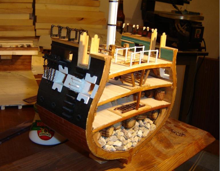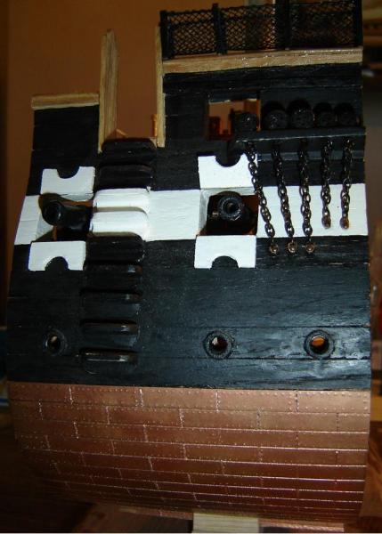 Działa wykonane analogicznie jak wcześniejsze.Olinowanie dział też nie pełne , ale żeby koledzy z dołu się nie obrazili musi tak być.
