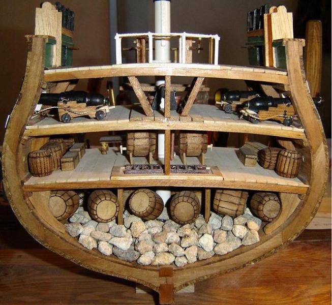 ... dziś montaż artylerii. Największym problemem było mocowanie do poszycia bo zero miejsca i pokładu też już nie zdemontuję. No ale jakoś się udało choć parę godzin mi to zajeło. mocowanie jest trochę nie pełne ale nic już nie mogłem tam upchnąć bo z tym był problem.
