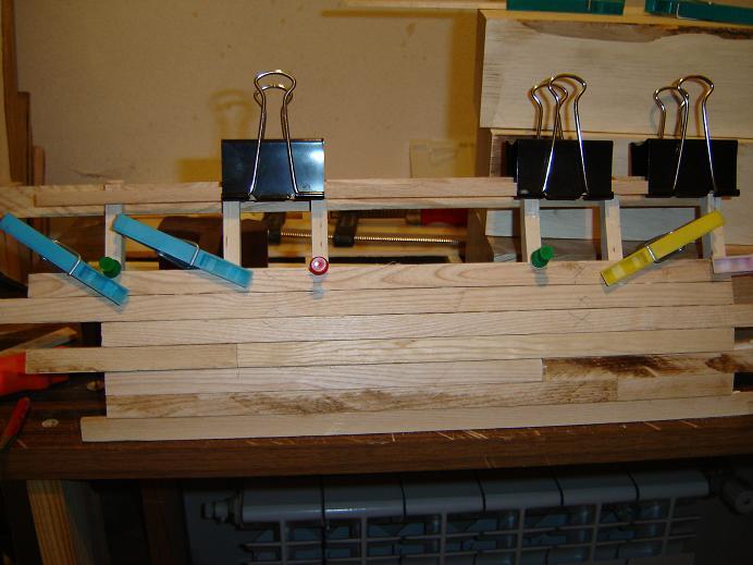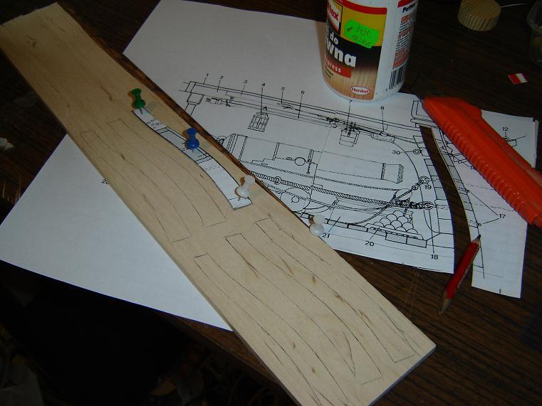 Wręgi z gruszy , pkładniki z osiki (bodajże). Pokładniki bez charakterystycznych wygięc bo tak mam w planie i chyba nie będę zmieniał. Reszta w trakcie.