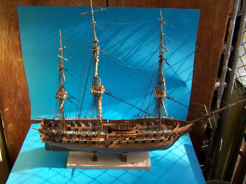 gratuluje ukończenia modelu ładnie wygląda nawet na tej podstawce :lol: a tak na serio olinowanie prezentuje się świetnie , zresztą jak cały model :D aż miło popatrzeć .