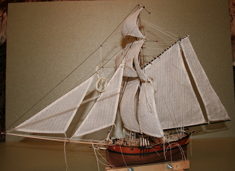 Po dość długich zmaganiach z nićmi, batystem oraz maszyną do szycia ( chociaż nie jestem krawcem ) ale w wielkich mękach udało się uszyć żagle.