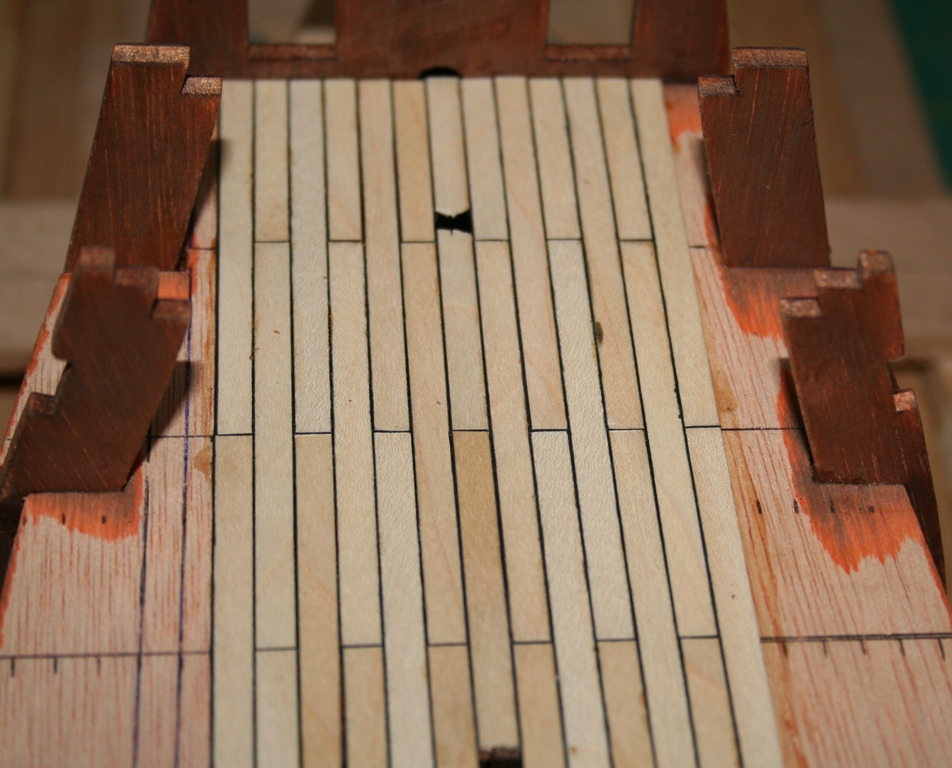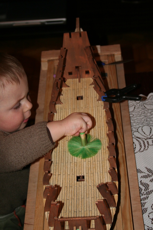 W końcu pokład został zakołkowany drewnianymi kołeczkami o średnicy 0,5 mm.