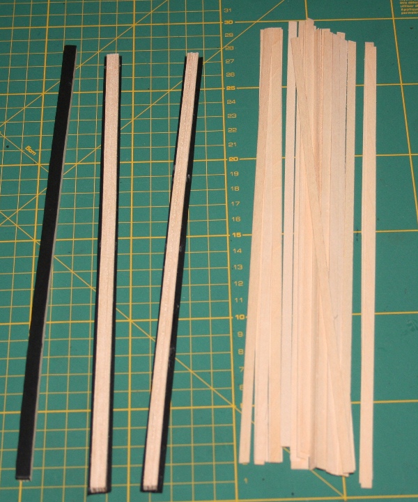 viewtopic.php?f=536&t=37230&hilit=pilarkaNastępnie arkusz forniru w Moim przypadku Klon - grubość 0.6 mm tnę na deseczki o szerokości 5 mm następnie składam w pakiety po 10-12 szt. Po jednej stronie smaruję klejem ( bardzo cienka warstwa) i przyklejam kawałek czarnego bloku technicznego ( dostępny w każdym papierniczym). Po wyschnięciu pakiety tnę na 7 cm kawałki i do jednego z boków przyklejam skrawek czarnego papieru. Pozostaje już tylko pakiety rozciąć żyletką.