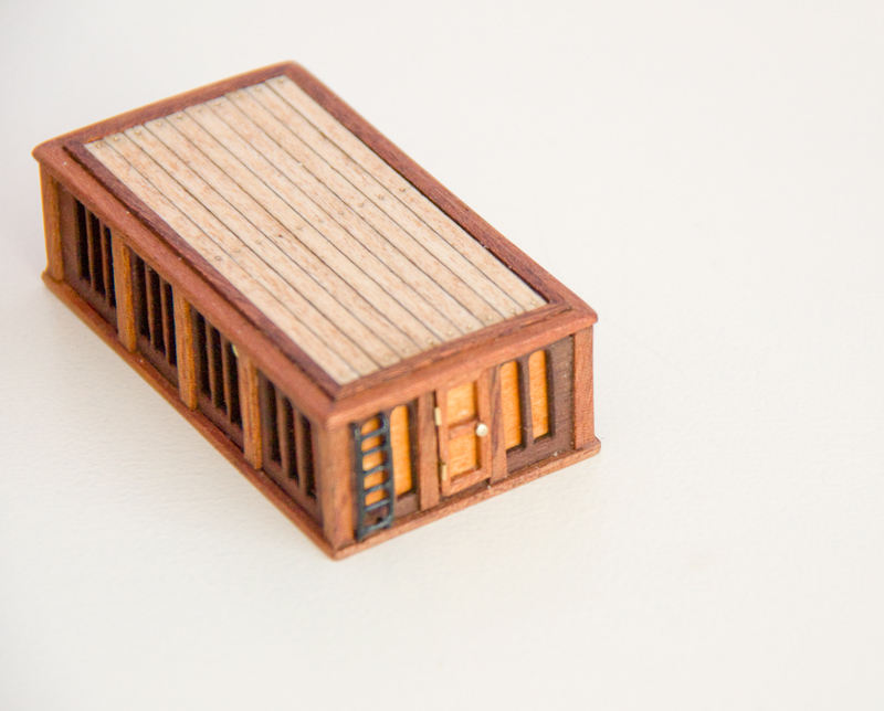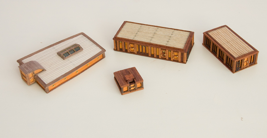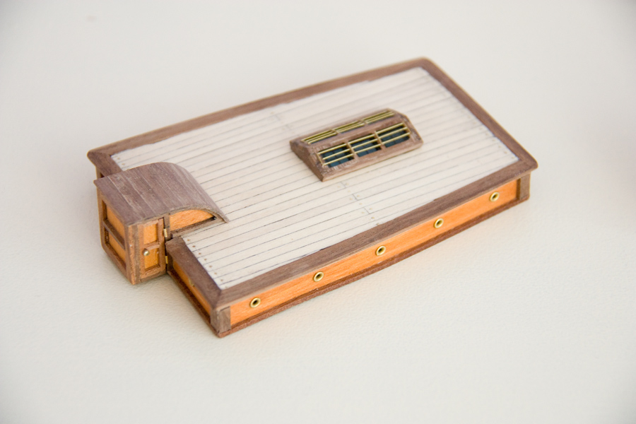 Prawie całe wyposażenie pokładu jest gotowe. Pozostało tylko umieścić je na pokładzie i przykleić Wejściówkę nadbudówki rufowej zmieniłem na taką jaka jest w planach. W zestawie było to bardzo uproszczone.