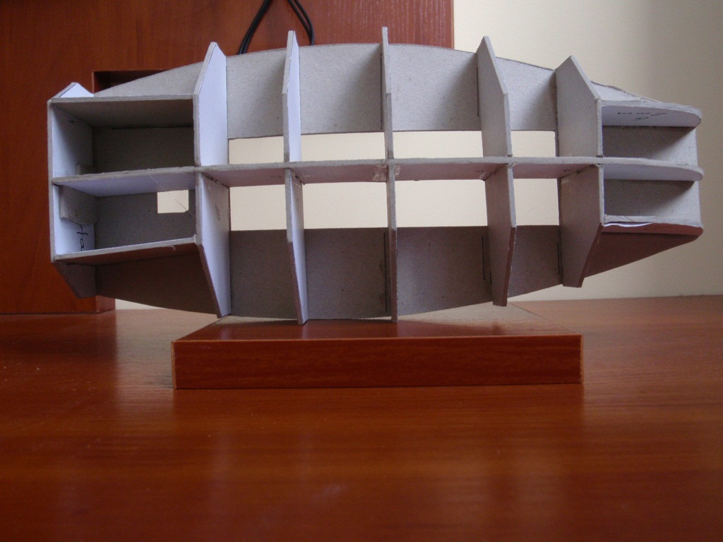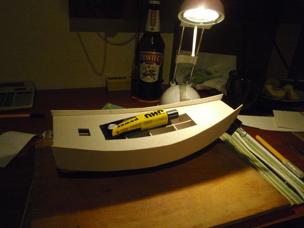 Dżonka już (jeśli chodzi o karton) prawie skończona trzeba jeszcze wyszlifować i dociąć kilka kawałeczków i fornir - i tu a propos forniru: