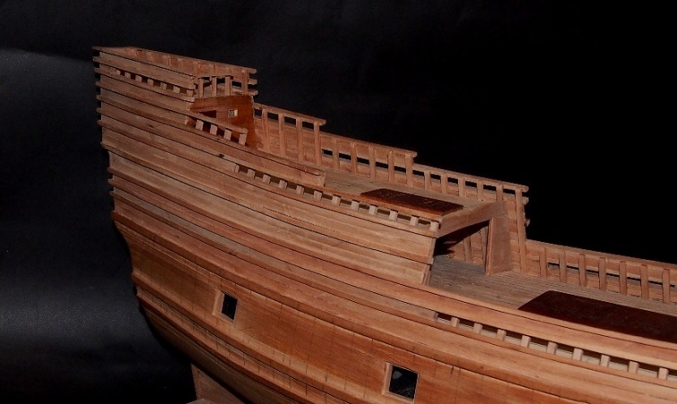 Dalszy ciąg prac - tym razem okna rufowe i pomału pnę się w górę z poszyciem- a co za tym idzie - coraz mniej widocznej sklejki.