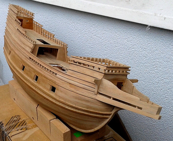 Miło mi poinformować, że w końcu zakończyłem etap, gdzie po sklejce i tym co pod spodem nie ma już śladu. Czyli dokończyłem poszycie i kołkowanie kasztelu i pnę się w górę i oby tylko sprzyjał wiatr ;)