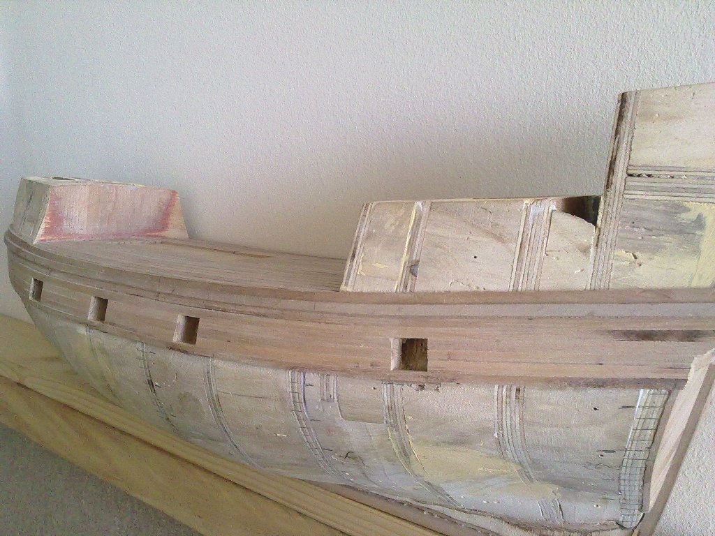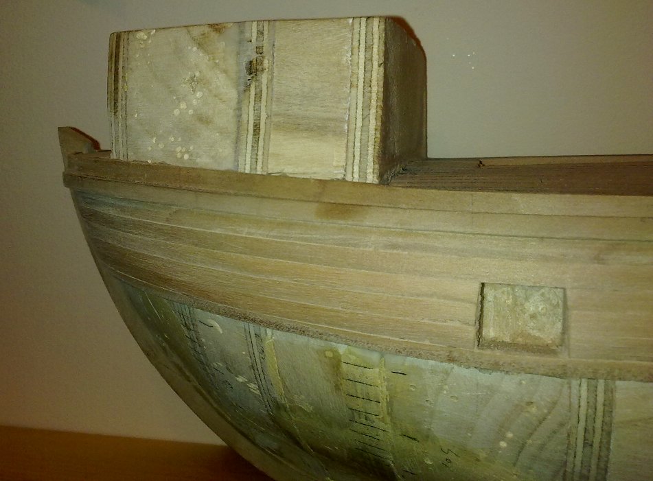 Stewa rufowa ma okreslona szerokosc - u mnie 6mm natomiast sklejka 8mm - listewki poszycia ida w tej samej plaszczyznie co bok stewy - w obecnej postaci nie ma szans uzyskac tej samej plaszczyzny (listewki beda wystawac) - czy trzeba sciac konce sklejki czy przypilowac listwy od spodu a moze jedno i drugie?