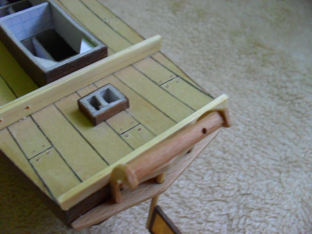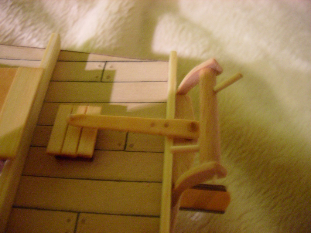 Witam. Prace ciągle idą do przodu dziś udało mi się skonstruować dach nadbudówki, dźwig kotwicy (chyba tak to się nazywa) , oraz przykleić ster.