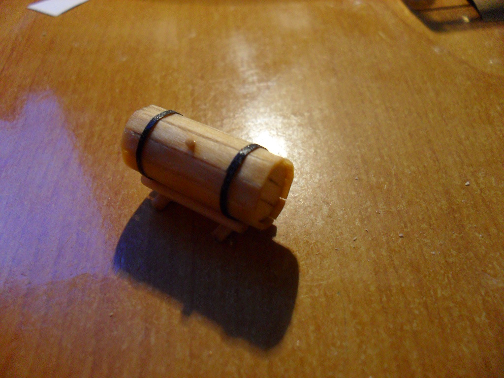 . Na dzień dzisiejszy udało mi się stworzyć materiał na żagle, a dokładnie go zabarwić na kolor herbaciany oraz stworzyć maszty i wystrugać coś co jest podobne do wioseł.