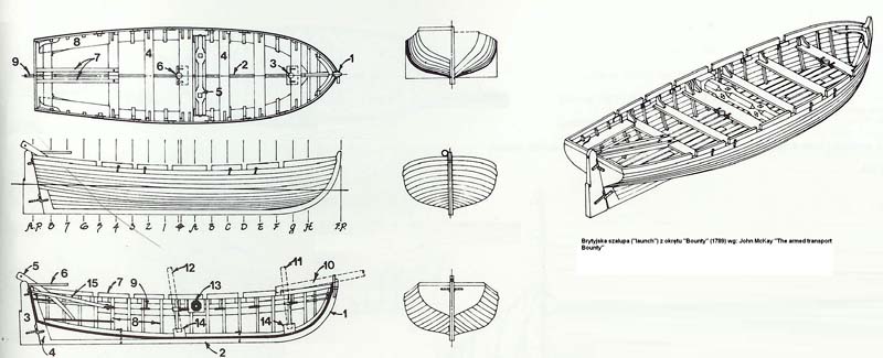 Wertując Internet natknąłem się na post o szalupach (Shipman), gdzie przedstawiono rysunek szalupy (tej 23-foot LAUNCH) z Bounty z "Anatomy of the ship" John McKay.