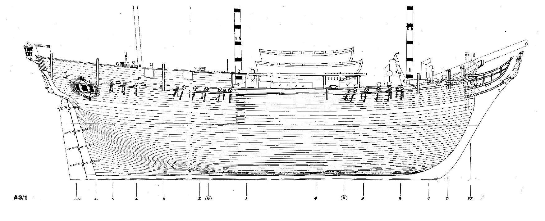 druga szalupa - (23-foot launch) - brak w mojej Anatomy - ale znalazłem trochę w internecie, jednak brakuje mi wymiarów drzewców itp...