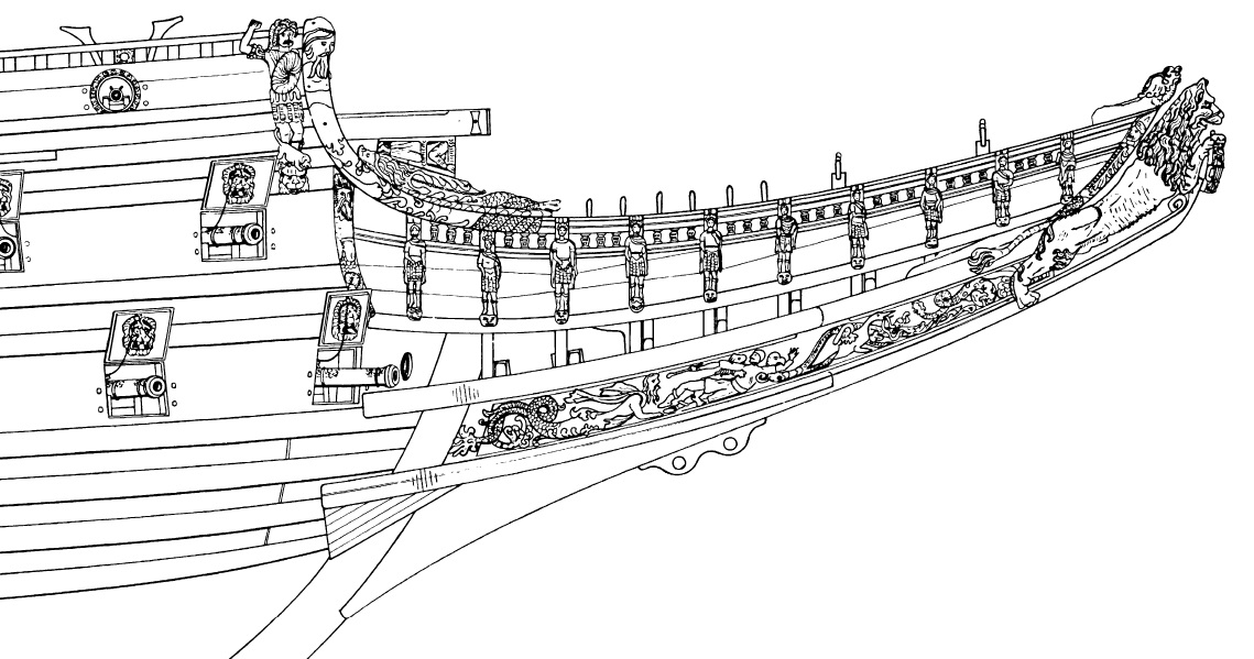 TomekA, ryszardw dziękuję wam za zabranie głosu, tą relację Billa na MSW uważnie prześledziłem, ale w zasadzie tam jest pokazywana tylko rufa. Planów dla okrętów z "krótką" stewą (a co za tym idzie jej podziałem na elementy składowe) przejrzałem całą masę, w SotS jest ten problem ze stewa a może lepiej ostroga dziobowa jest długa (trochę jak w galerach). Przy rozrysowywaniu posiłkowałem się rysunkami Vasy w której też ostroga jest długa (ale tu z kolei iglica jest rozdwojona)