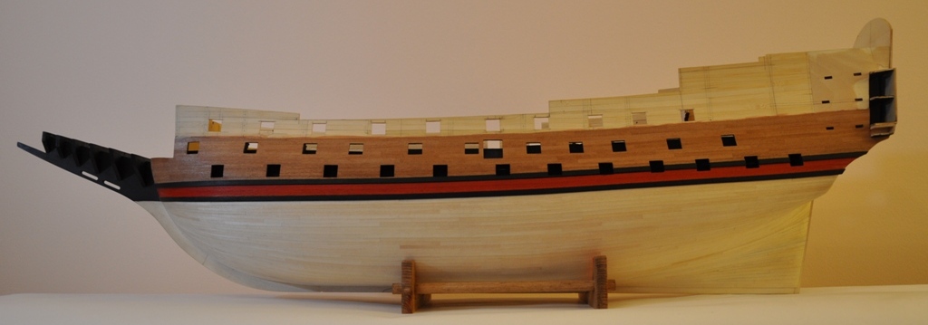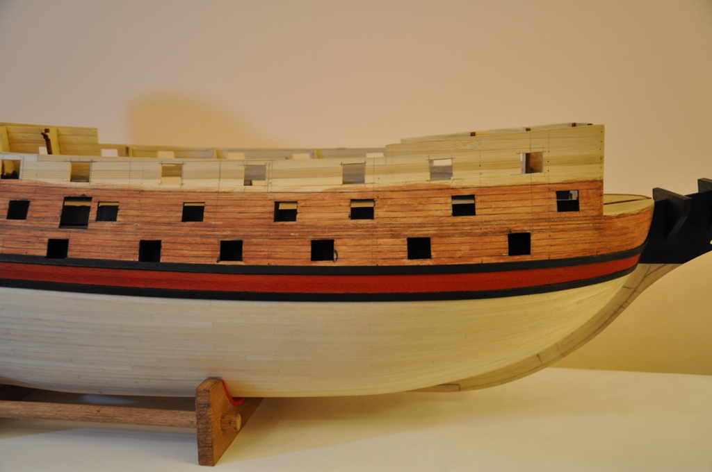Stępka musi jeszcze poczekać aż nabiorę trochę chęci, tymczasem wykonałem poszycie na lewej burcie z listewek sapele,