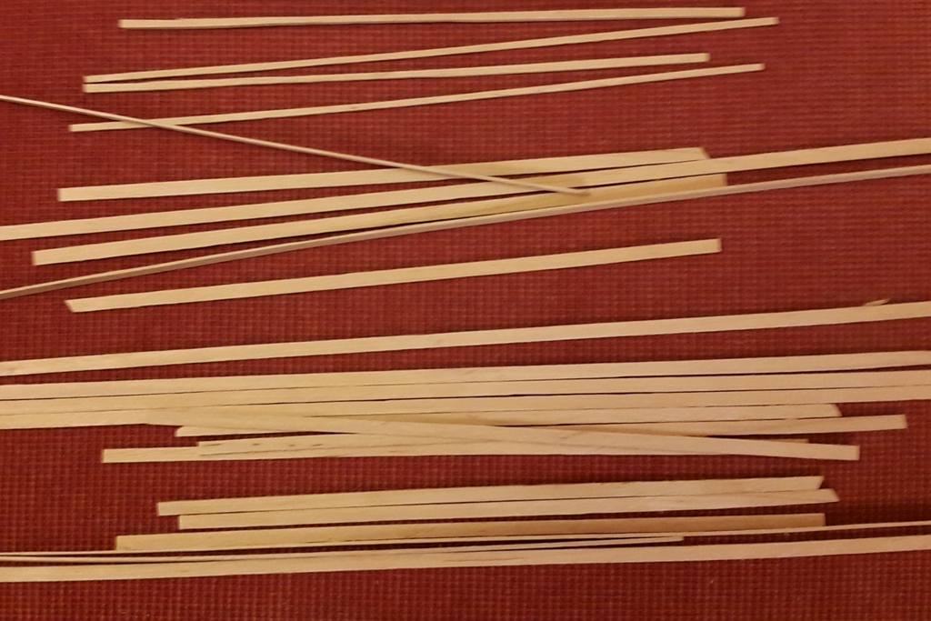 kiedyś Adam (Oksal) napisał, że do celów modelarskich fantastycznie nadają się sztachety olchowe, sprzedawane w marketach budowlanych, taką sztachetę właśnie nabyłem, została ona pocięta wstępnie na listewki o przekroju 5x18mm, a potem na jeszcze drobniejsze listewki, ja potrzebowałem akurat 1x5mm