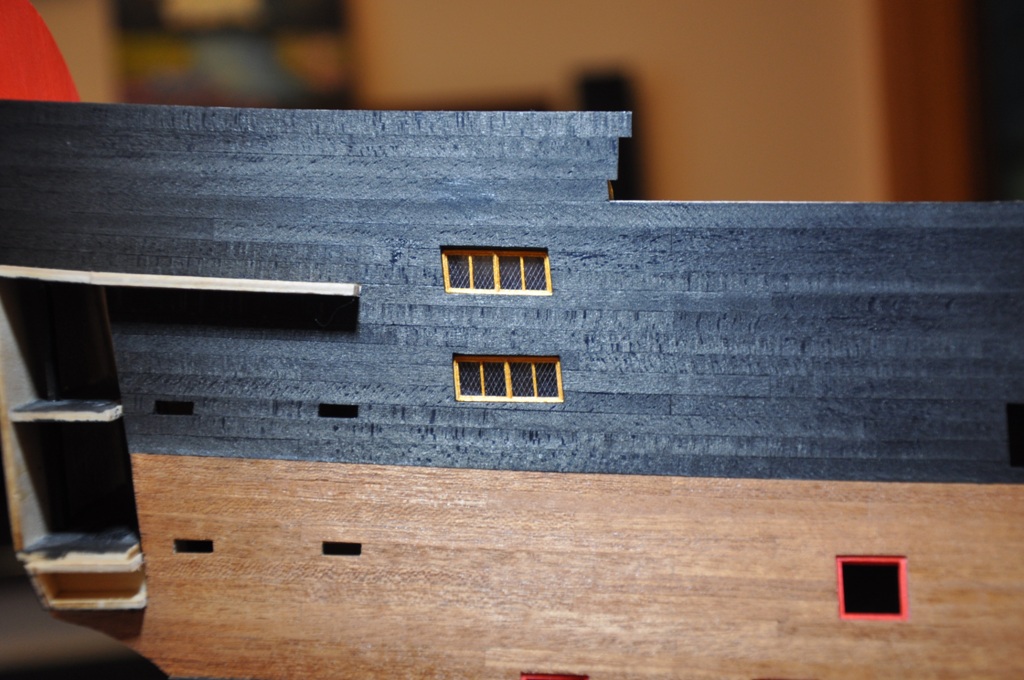zakończyłem prace wewnątrz przy ambrazurach lewej burty
