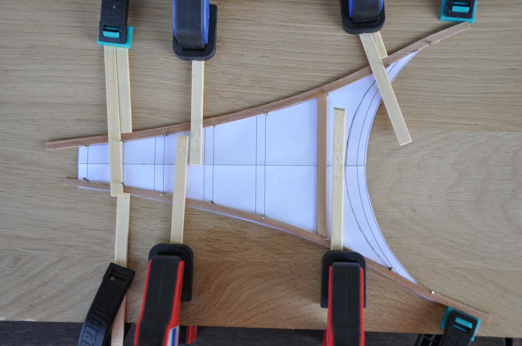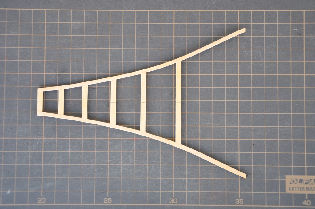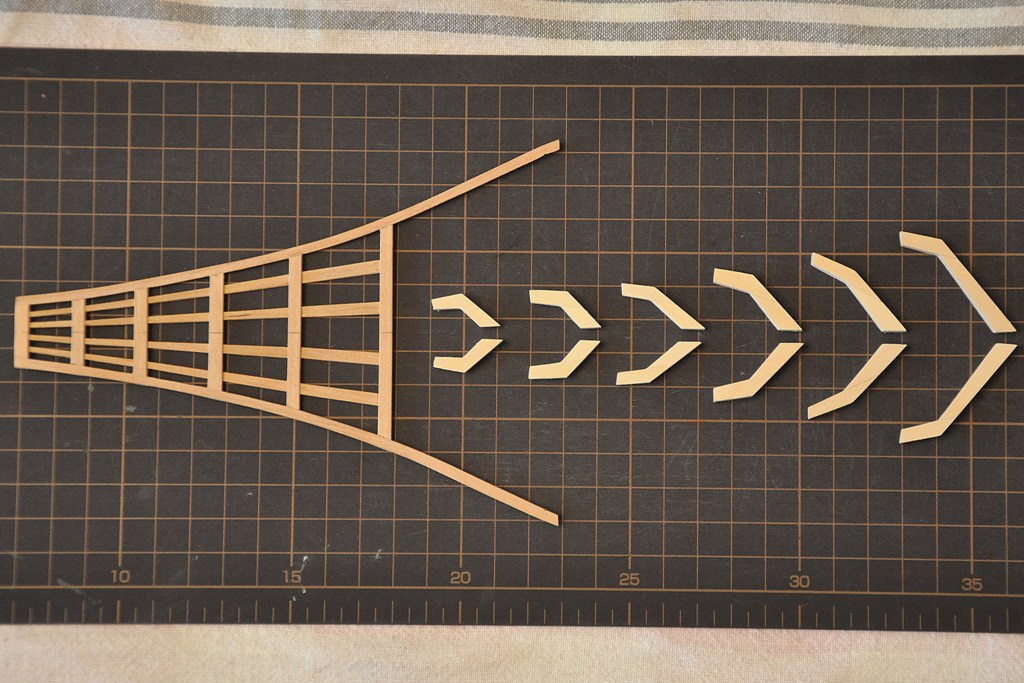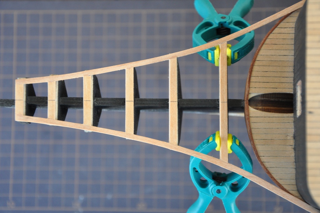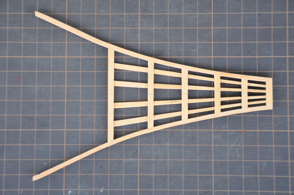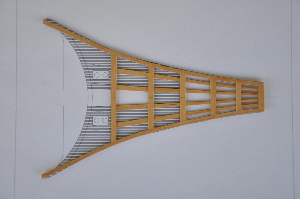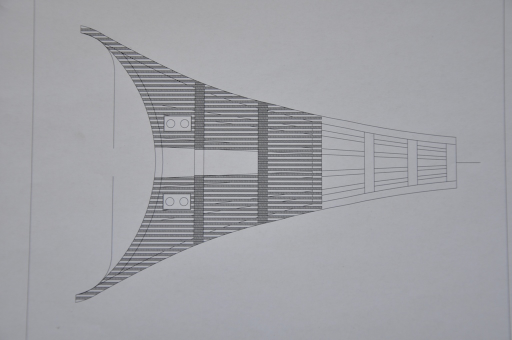 każda para elementów nośnych kosza dziobowego składa się z 12 elementów sklejonych w trzech warstwach