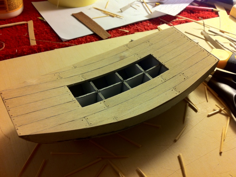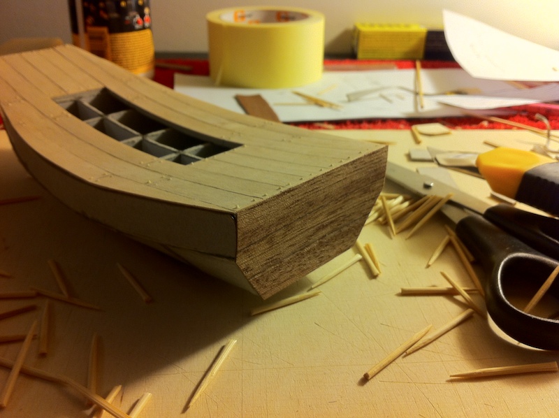 jutro przeszlifuję. Nie mogłem się powstrzymać i okleiłem rufę mahoniem