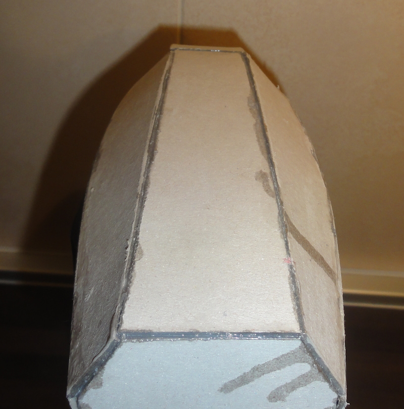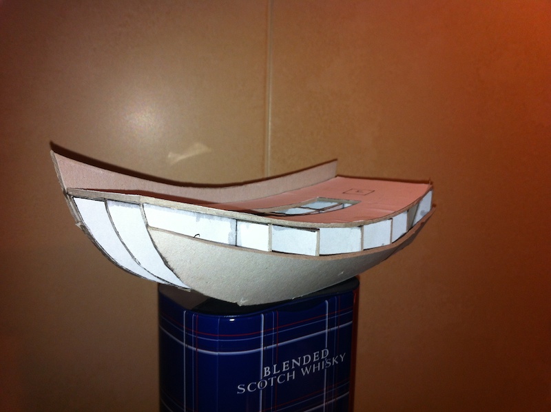 Szkielet buduję z tektury o grubości 3 mm. Taką znalazłem w piwnicy- tył szafki z czasów studenckich (IKEA to jednak porządna firma). Widać czekała na lepsze czasy.