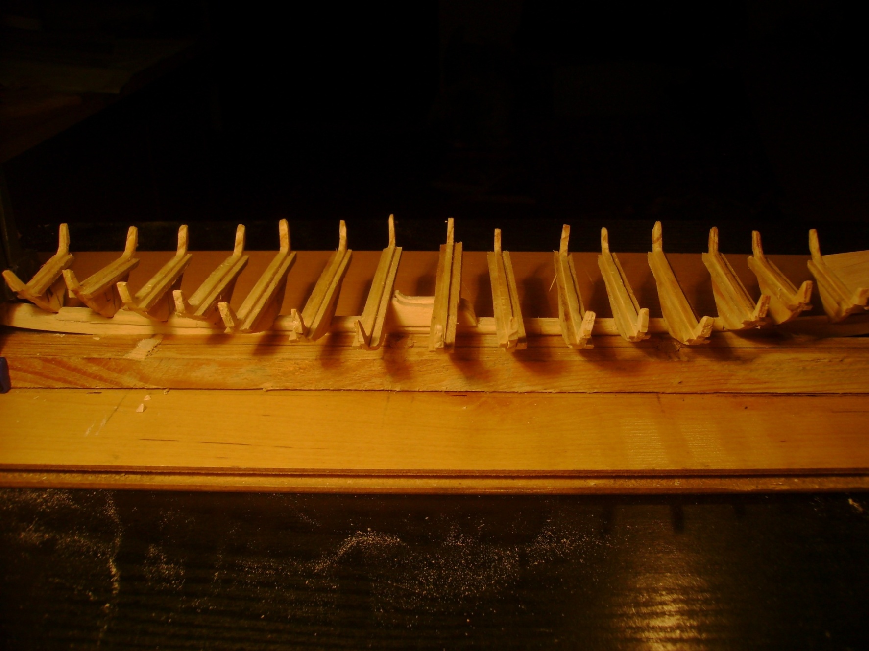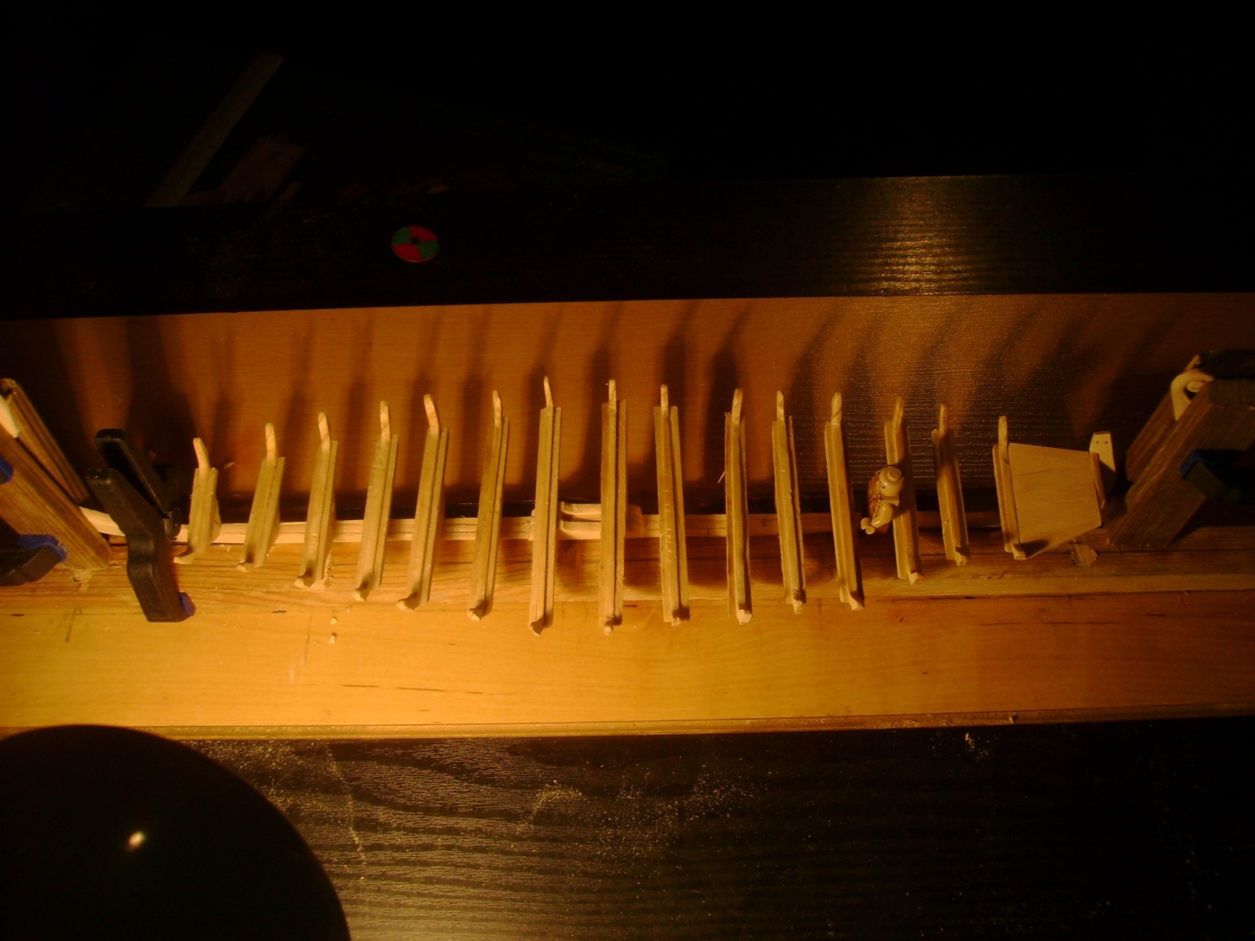 Sosnowa stępka to totalna klapa. Połamała się w kilku miejscach więc muszę użyć czegoś innego. Mam na zużyciu troche bukowych pacek więc będe z niego budować. Nie wiem tylko czy zostawiać wręgi czy je też zrobić z buku.