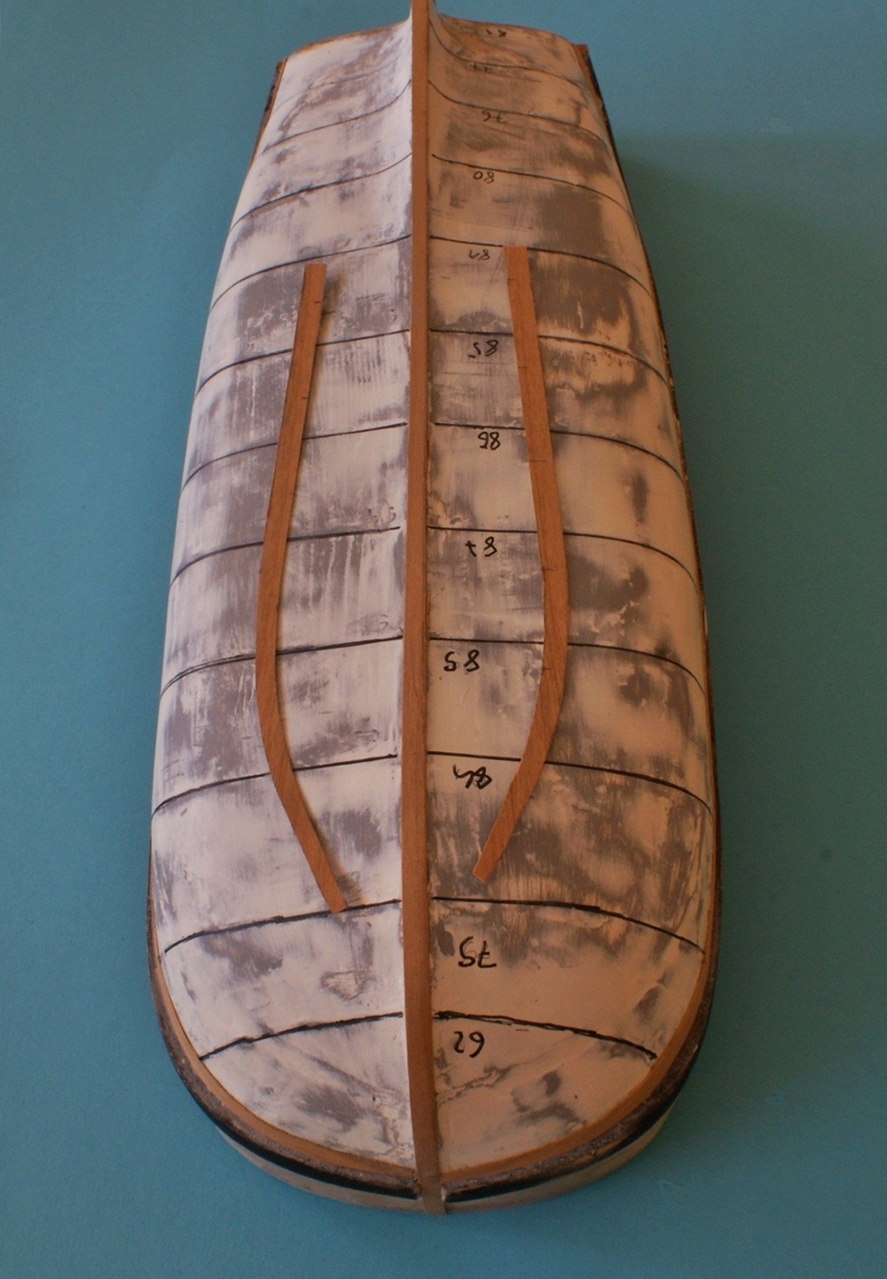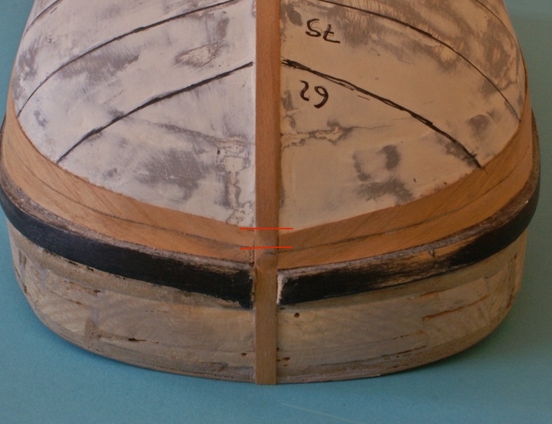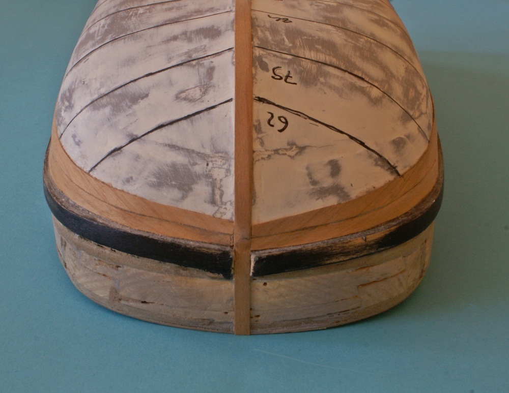 Janek, nie to żebym się czepiał, ale planki powinny być układane symetrycznie tak, aby planki z każdej burty zbiegały się przy stewie w tym samym miejscu tzn. na tej samej wysokości. Trochę się u Ciebie to porozjeżdżało.