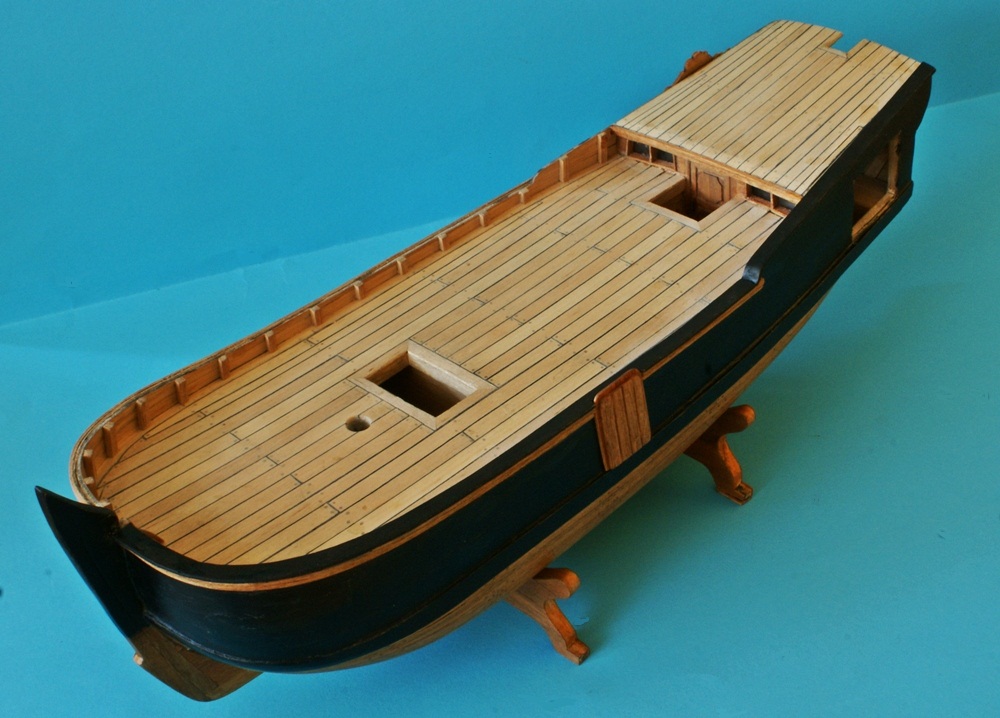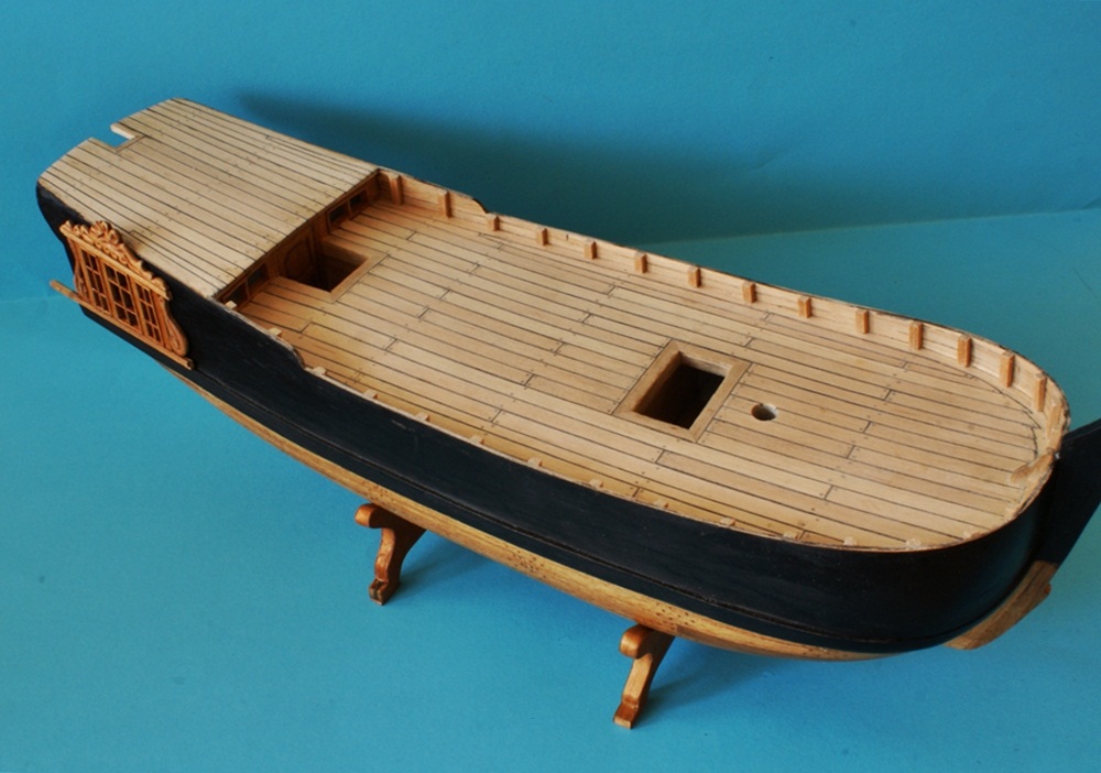 Jedna burta z parapetem i szpigatami (na razie tylko rurki w pokładzie)
