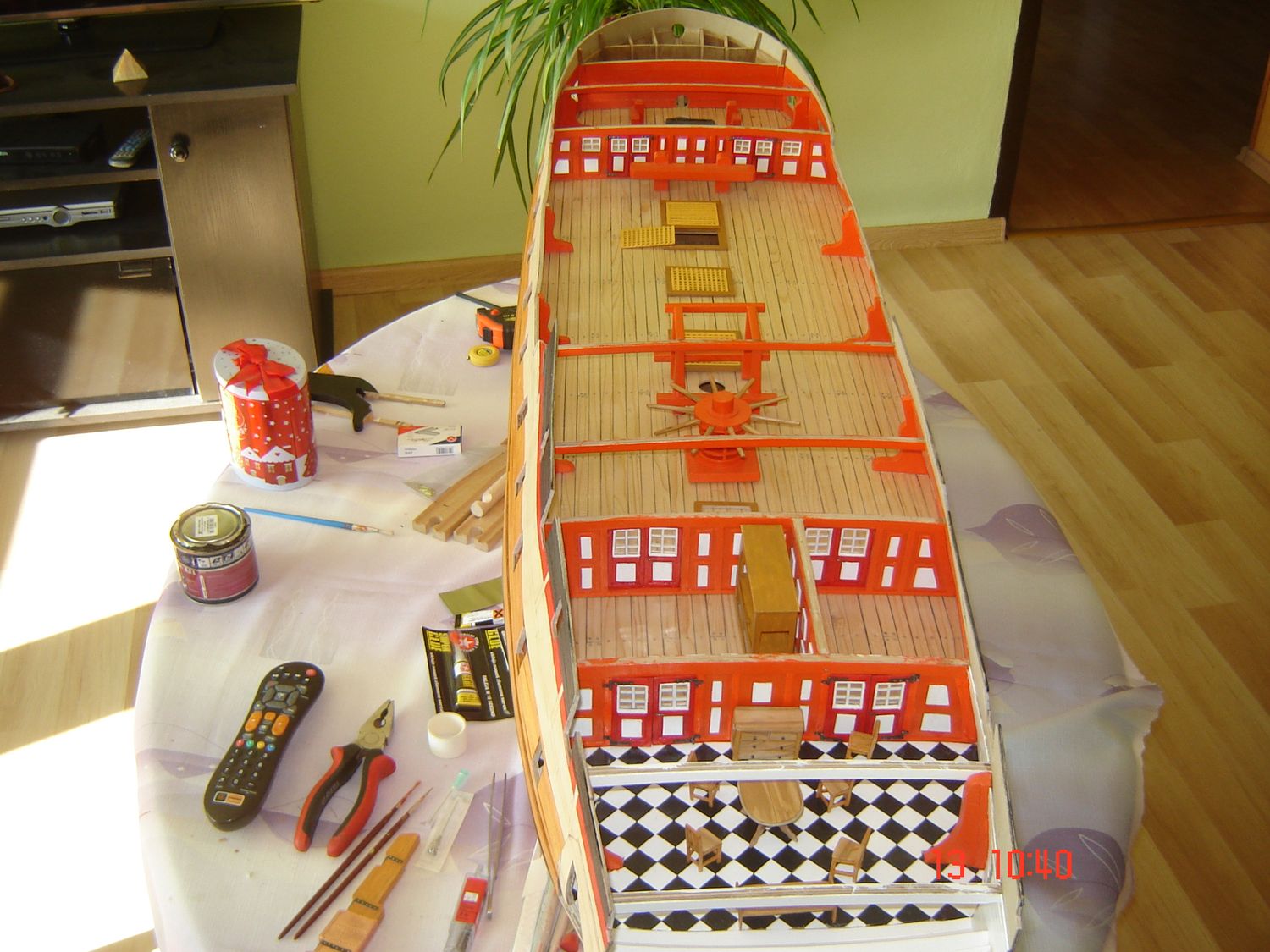 Wiedziałem,że tak powiesz. Spodziewałem się tego. Ale wolę jednak Twoją szczerość niż lakierowanie.Co do pokładu to niestety nic już się nie da zrobić. Żałuję tylko, że wcześniej nie zarejestrowałem się na Kodze. Gretingi wymienię, zamówię u Mirka. A co do kołków to wytłumacz to jaśniej, bo wiesz przecież, że jestem jeszcze zielony w tym temacie. Mam tylko jeszcze nadzieję że na tym akurat pokładzie zostanie to częściowo zakryte przez pozostałe elementy. Odpowiedz