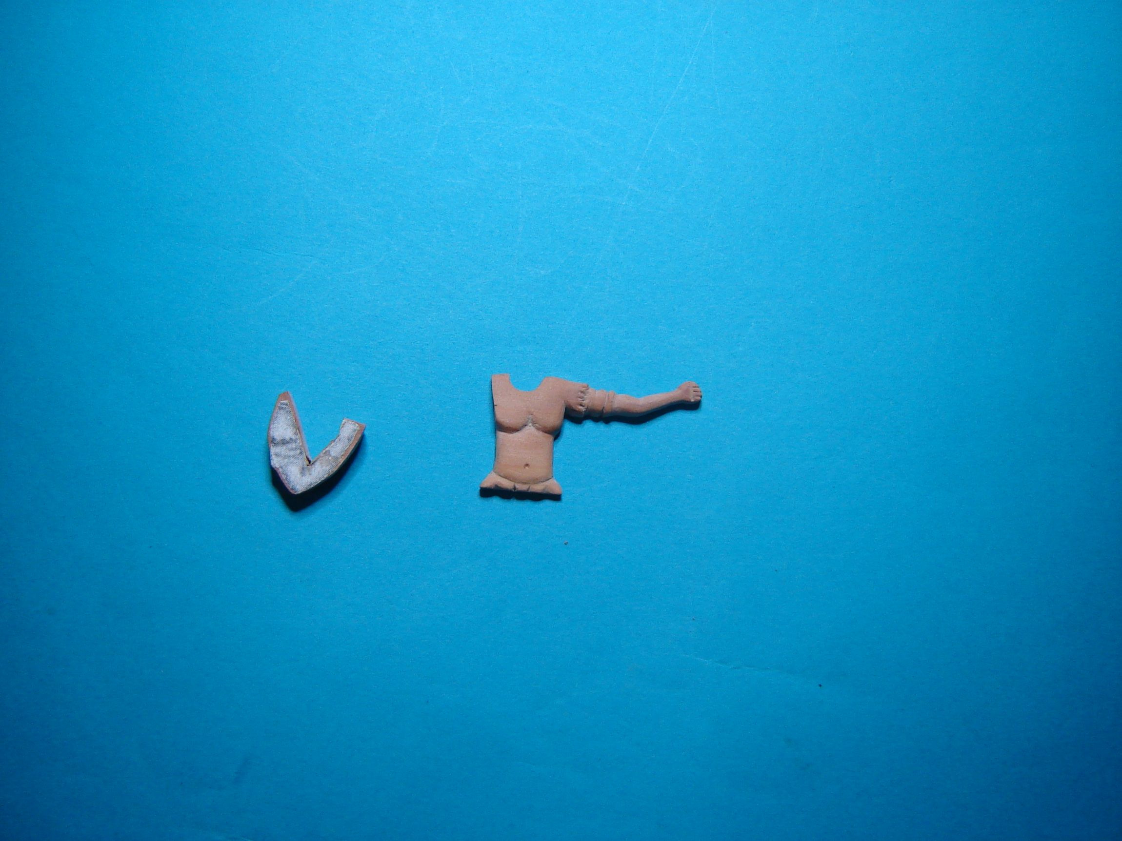 Po wyszlifowaniu prawej reki przykleiłem ją do tułowia Ateny. Wydziobałem też tarczę.