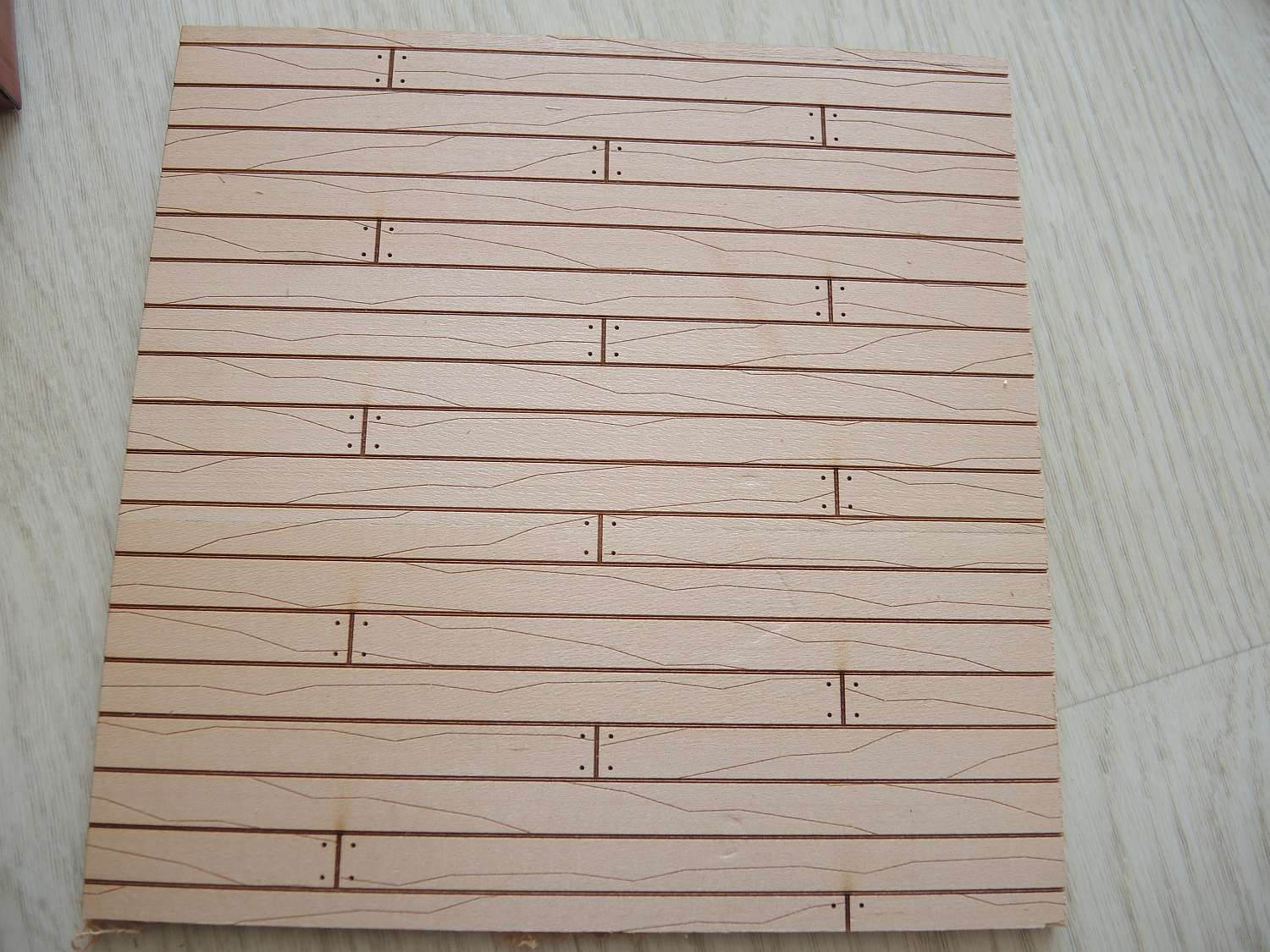 Pokład. Co ciekawe jedna strona jest frezowania laserem jako imitacja <br />deskowania (deska 10 mm). W instrukcji każą wkleić druga stronę listewkami <br />jako pokład (wspomniane listewki 8 mm)