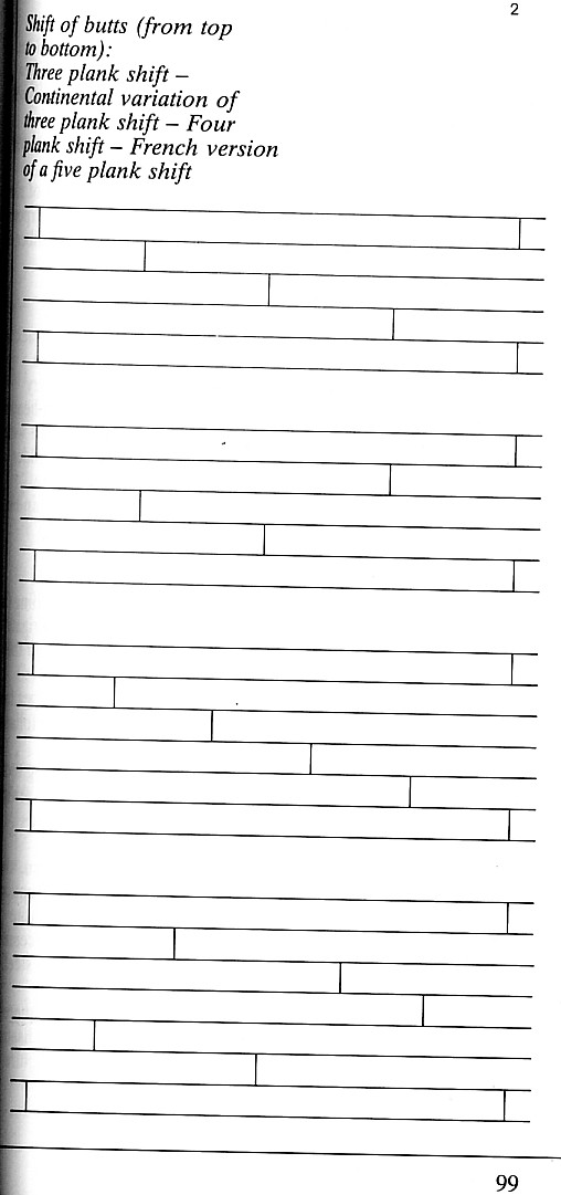 Osobiscie, gdybym budowal ten model, zrobilbym - dla dodania autentycznosci, bardziej nieregularna wersje kontynentalna three plank shift. Zauwazylem, ze na pelnowymiarowych jednostkach niezbyt rygorystycznie stosowano ten schemat, uzywajac raczej dlugosci desek, jakimi dysponowano i dla oszczednosci na materiale nie przycinano ich automatycznie na okreslone dlugosci tak aby utrzymywac ten geometrycznie wygladajacy tzw. shift (przesuniecie).