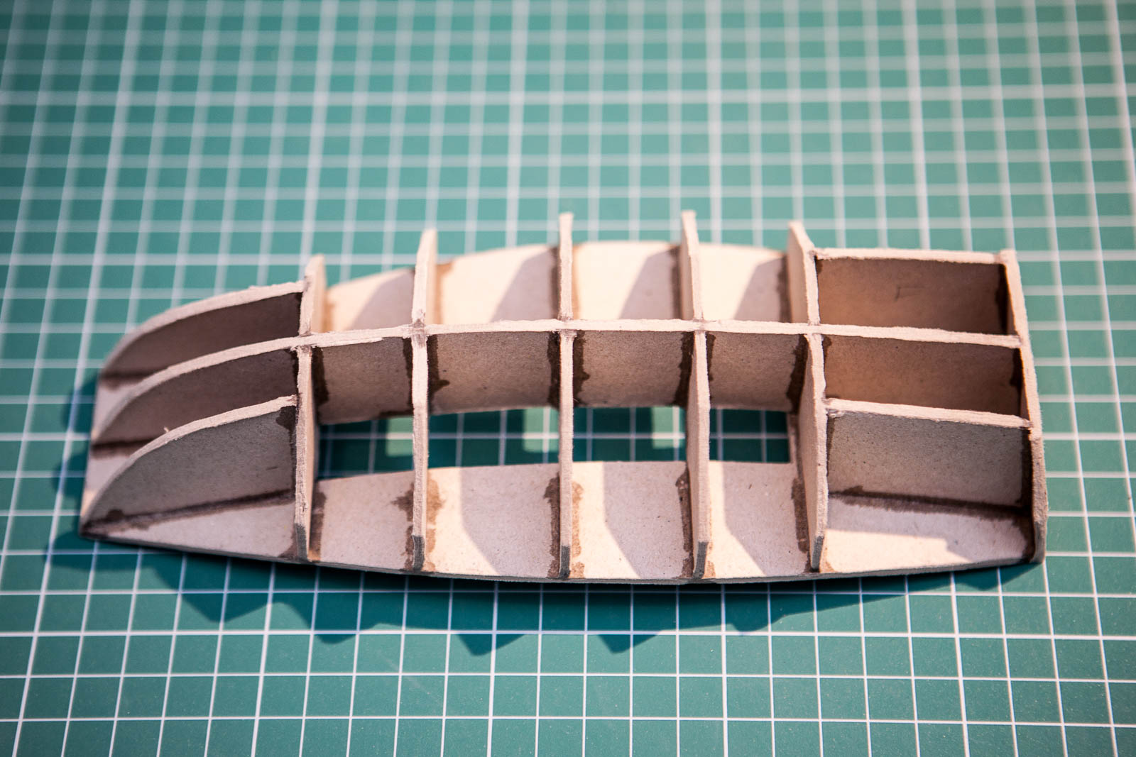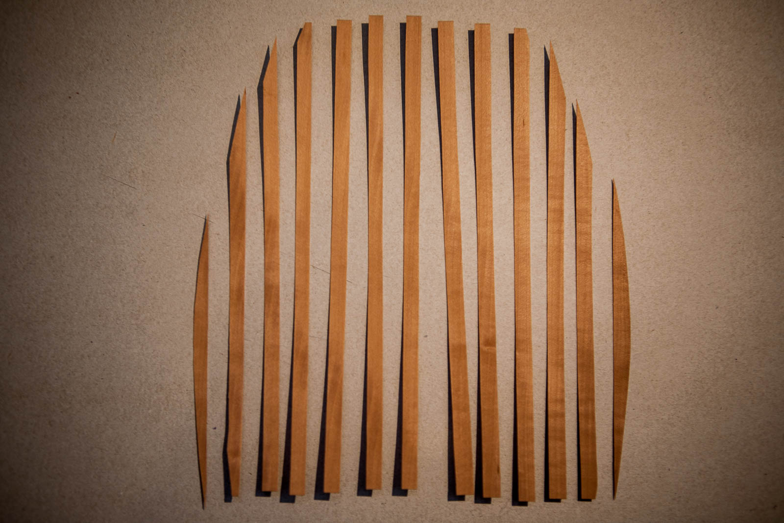 - Dno też wyszło w miarę równo. Kleiłem z pasków szerokości 10mm zwężających się do 8 mm. Całość przejechana nożykiem do tapet a następnie zeszlifowana zgodnie z przebiegiem krawędzi.
