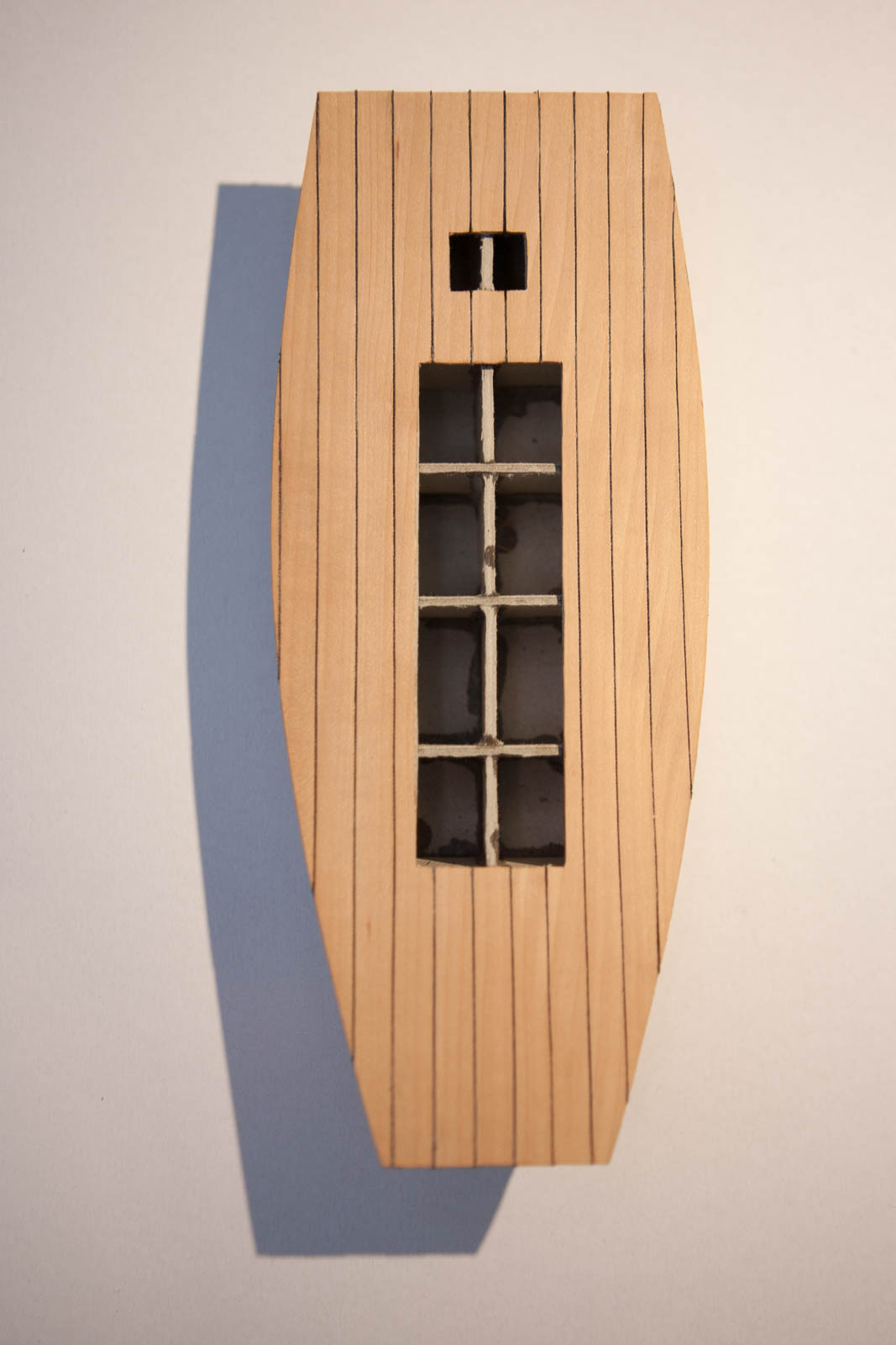 - Okleiłem także rufę pięcioma paskami tego samego forniru (Wszędzie będzie grusza)