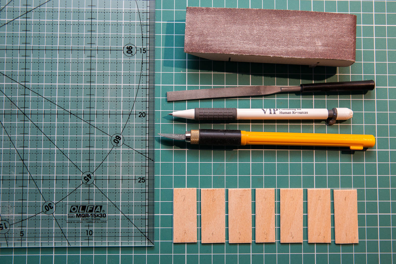 Dodatkowo zabejcowałem 3 kawałki w kolejności od lewej dąb, wiśnia i teak. Wybiorę wiśnię lub teak bo pasuje do deseczek które widać jako pierwsze z prawej, a z nich będą elementy na pokładzie i nadbudówka.