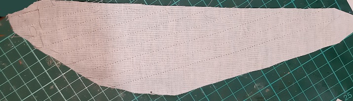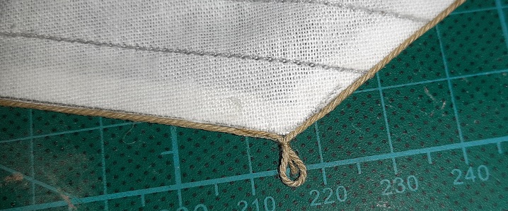 Jak u góry, skończyłem flying jib sail i rozbabrałem kolejne 2. I przy okazji wykonałem PRÓBNE piętra wyblinek nową, ciemną nitką.