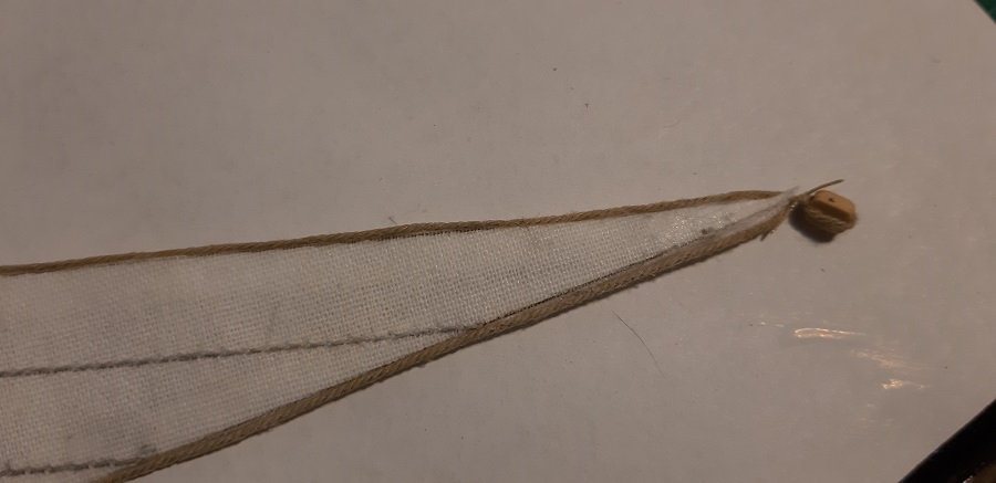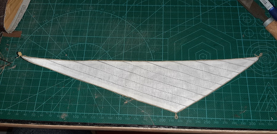 A przy okazji ukończyłem żagiel jib sail, tylko zabezpieczyć węzełki i obciąć.