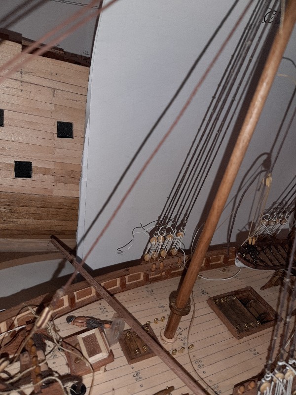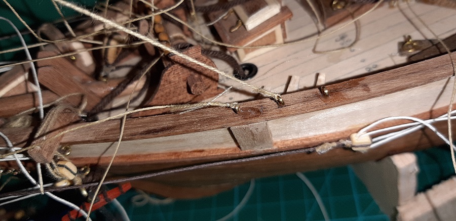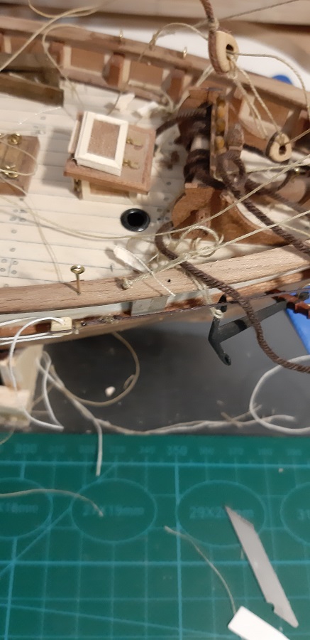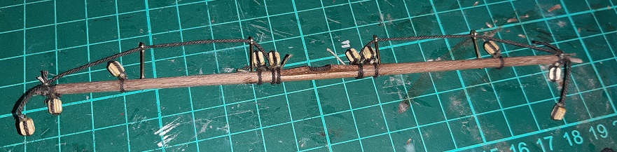 , tak samo z reją, tyle że ja jeszcze zdejmę bo zapomniałem dać tam bloczka który jest potrzebny mechanizmowi podnoszenia szalupy.