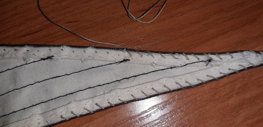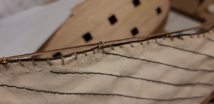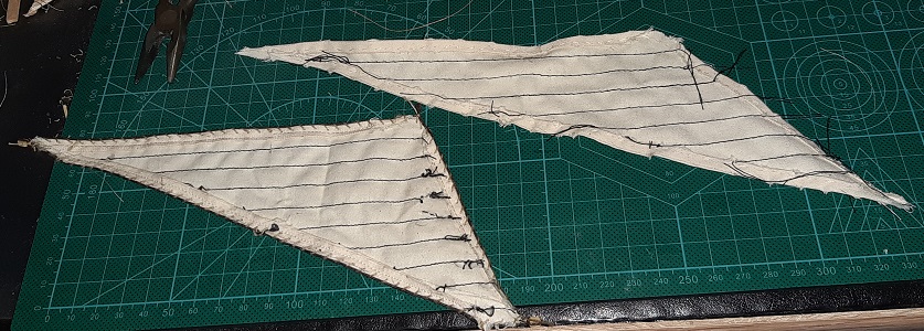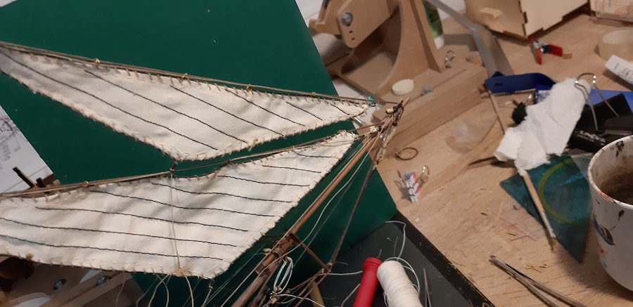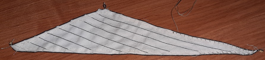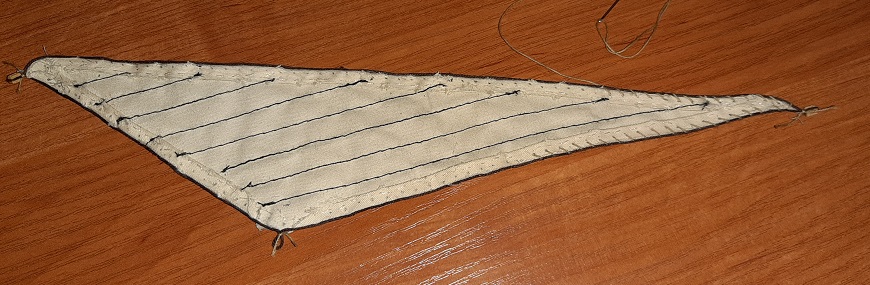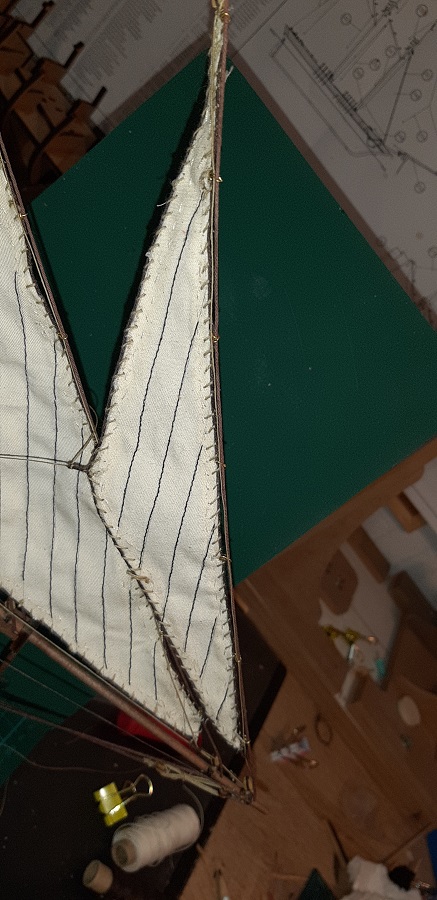 Reja ukończone w 90%, zacząłem wykonywać żagiel nr 263 tak zwany "jib (sail)".