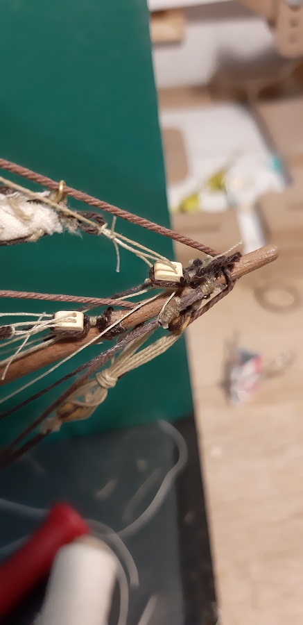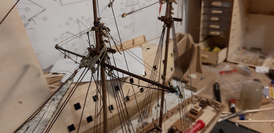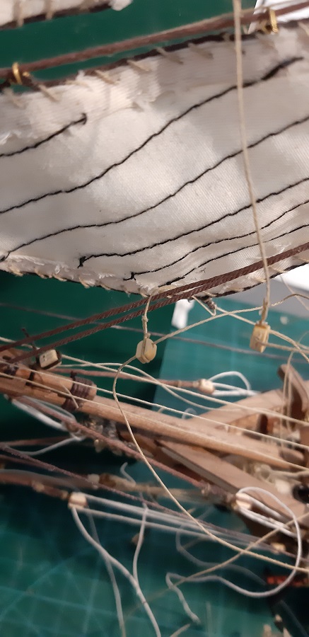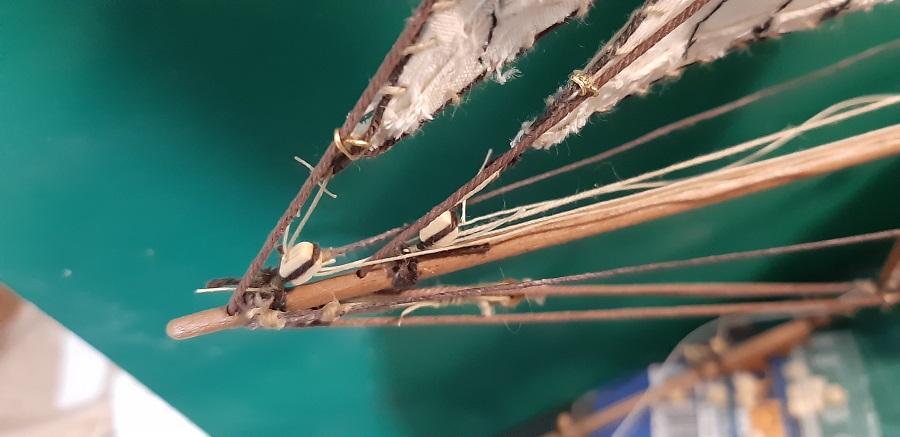 Po powieszeniu go zacznę robić WSZYSTKIE reje i żagle, dopiero potem je mocując.
